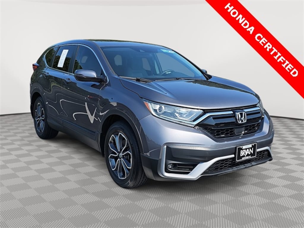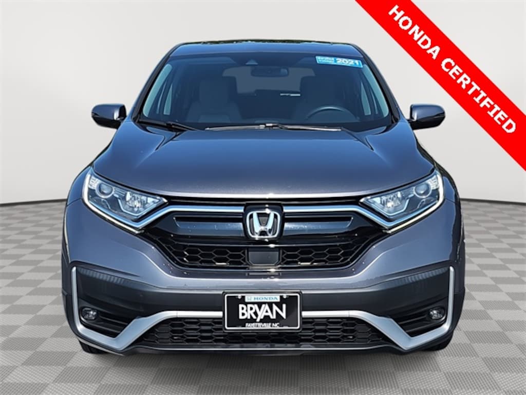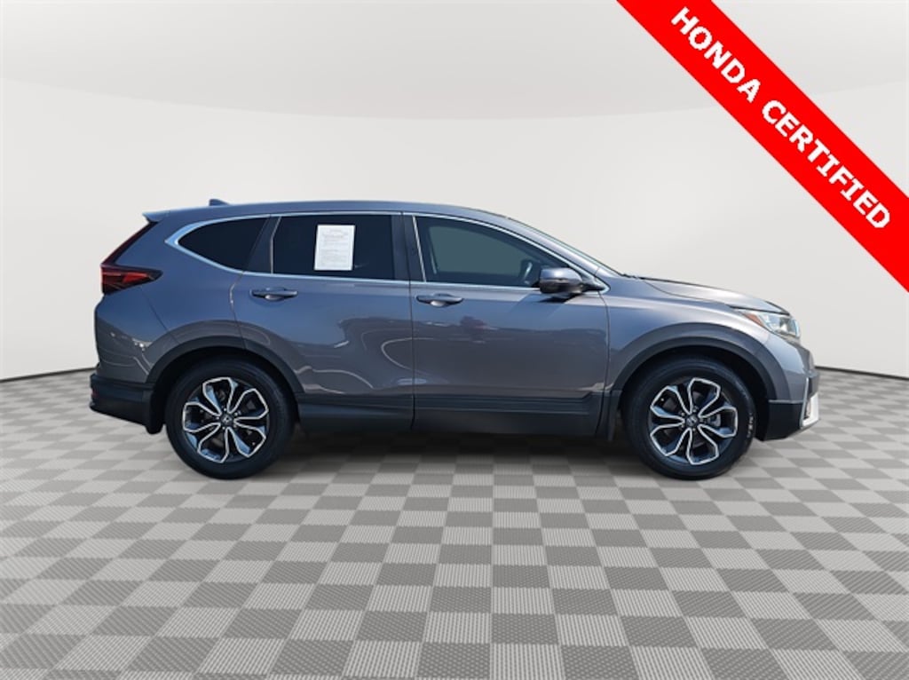 This 2021 Honda CR-V EX in Modern Steel Metallic features: HondaTrue Certified Certified, HondaTrue Certified Certified, 18" Alloy Wheels, 4-Wheel Disc Brakes, 5.64 Axle Ratio, 6 Speakers, ABS brakes, Adaptive Cruise Control: Adaptive Cruise Control (ACC) with Low-Speed Follow, Air Conditioning, Alloy wheels, AM/FM radio: SiriusXM, Apple CarPlay/Android Auto, Auto High-beam Headlights, Automatic temperature control, Blind Spot Information (BSI) System warning, Brake assist, Bumpers: body-color, Cloth Seat Trim, Compass, Delay-off headlights, Driver door bin, Driver vanity mirror, Dual front impact airbags, Dual front side impact airbags, Electronic Stability Control, Exterior Parking Camera Rear, Forward collision: Collision Mitigation Braking System (CMBS) + FCW mitigation, Four wheel independent suspension, Front anti-roll bar, Front Bucket Seats, Front Center Armrest, Front dual zone A/C, Front fog lights, Front reading lights, Heated door mirrors, Heated Front Bucket Seats, Heated front seats, Illuminated entry, Low tire pressure warning, Occupant sensing airbag, Outside temperature display, Overhead airbag, Overhead console, Panic alarm, Passenger door bin, Passenger vanity mirror, Power door mirrors, Power driver seat, Power moonroof, Power steering, Power windows, Radio data system, Radio: 180-Watt AM/FM/HD/SiriusXM Audio System, Rear anti-roll bar, Rear seat center armrest, Rear window defroster, Rear window wiper, Remote keyless entry, Security system, Speed control, Speed-sensing steering, Speed-Sensitive Wipers, Split folding rear seat, Spoiler, Steering wheel mounted audio controls, Tachometer, Telescoping steering wheel, Tilt steering wheel, Traction control, Trip computer, Turn signal indicator mirrors, Variably intermittent wipers, LOCAL ONE OWNER.