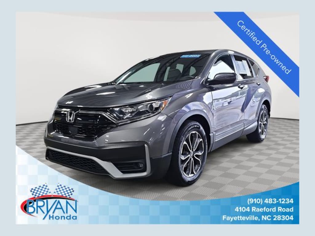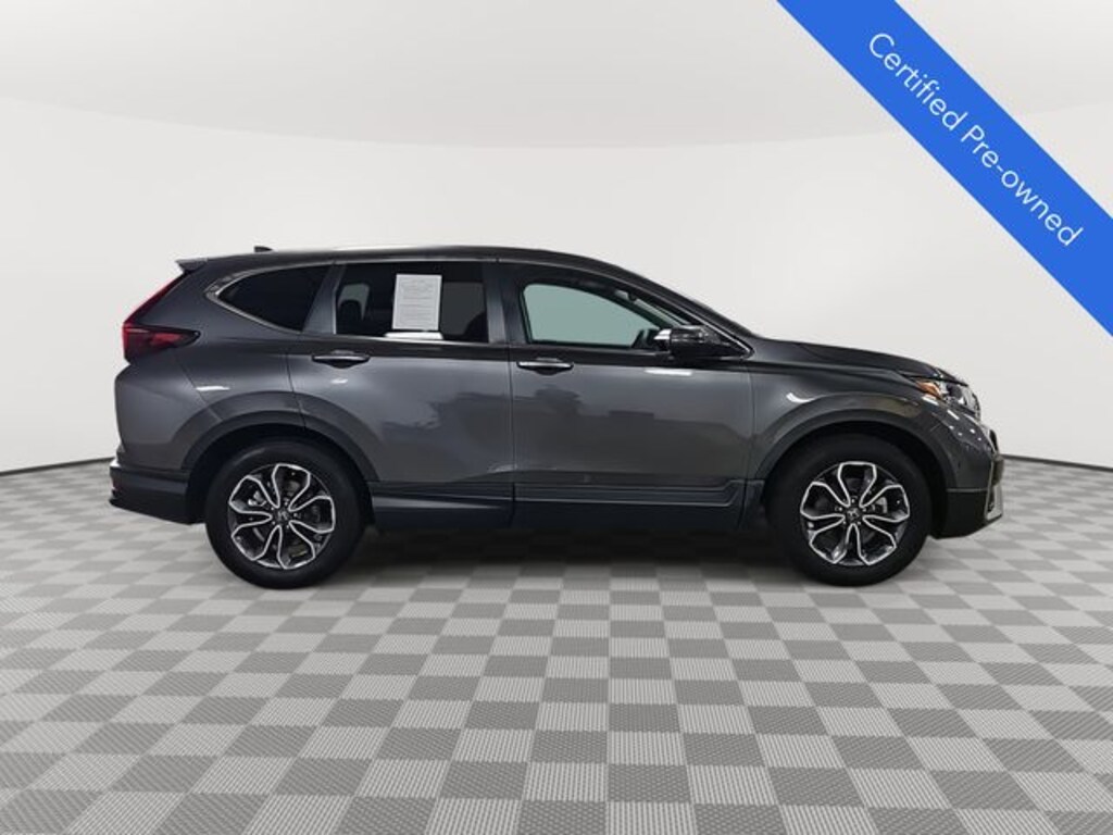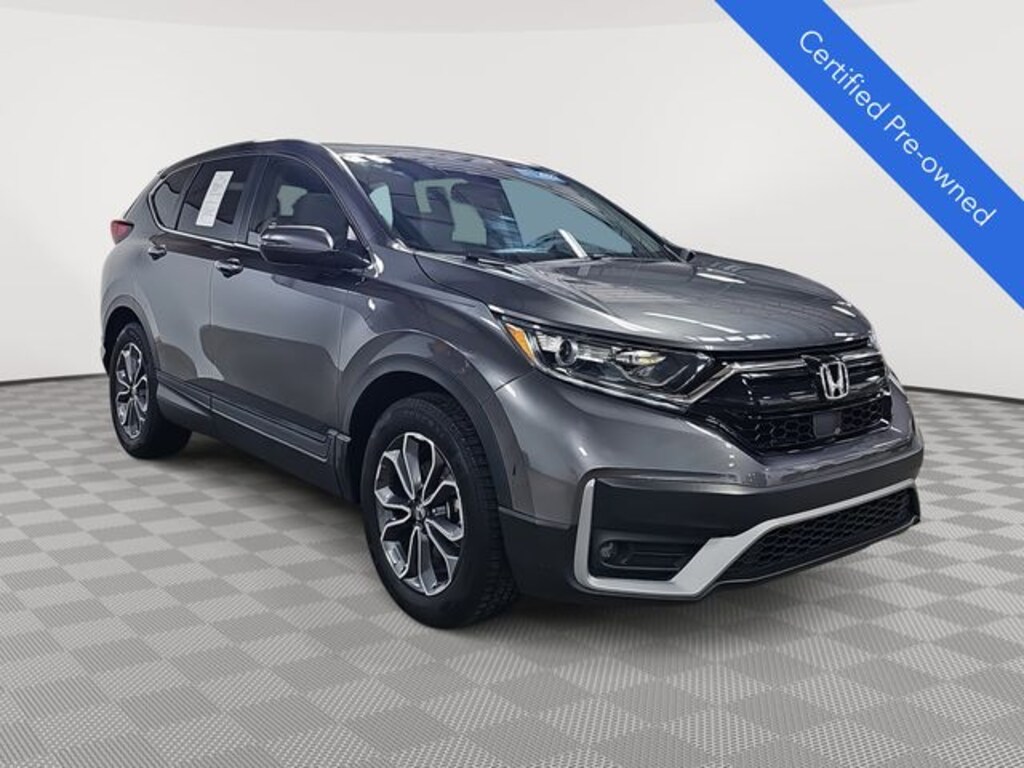 This 2022 Honda CR-V EX in Lunar Silver Metallic features: HondaTrue Certified Certified, CLEAN AUTOCHECK!, HondaTrue Certified Certified, 18" Alloy Wheels, 4-Wheel Disc Brakes, 5.64 Axle Ratio, 6 Speakers, ABS brakes, Adaptive Cruise Control: Adaptive Cruise Control (ACC) with Low-Speed Follow, Air Conditioning, Alloy wheels, AM/FM radio: SiriusXM, Apple CarPlay/Android Auto, Auto High-beam Headlights, Automatic temperature control, Blind Spot Information (BSI) System warning, Brake assist, Bumpers: body-color, Cloth Seat Trim, Compass, Delay-off headlights, Driver door bin, Driver vanity mirror, Dual front impact airbags, Dual front side impact airbags, Electronic Stability Control, Exterior Parking Camera Rear, Forward collision: Collision Mitigation Braking System (CMBS) + FCW mitigation, Four wheel independent suspension, Front anti-roll bar, Front Bucket Seats, Front Center Armrest, Front dual zone A/C, Front fog lights, Front reading lights, Heated door mirrors, Heated Front Bucket Seats, Heated front seats, Illuminated entry, Low tire pressure warning, Occupant sensing airbag, Outside temperature display, Overhead airbag, Overhead console, Panic alarm, Passenger door bin, Passenger vanity mirror, Power door mirrors, Power driver seat, Power moonroof, Power steering, Power windows, Radio data system, Radio: 180-Watt AM/FM/HD/SiriusXM Audio System, Rear anti-roll bar, Rear seat center armrest, Rear window defroster, Rear window wiper, Remote keyless entry, Security system, Speed control, Speed-sensing steering, Speed-Sensitive Wipers, Split folding rear seat, Spoiler, Steering wheel mounted audio controls, Tachometer, Telescoping steering wheel, Tilt steering wheel, Traction control, Trip computer, Turn signal indicator mirrors, Variably intermittent wipers, LOCAL ONE OWNER.