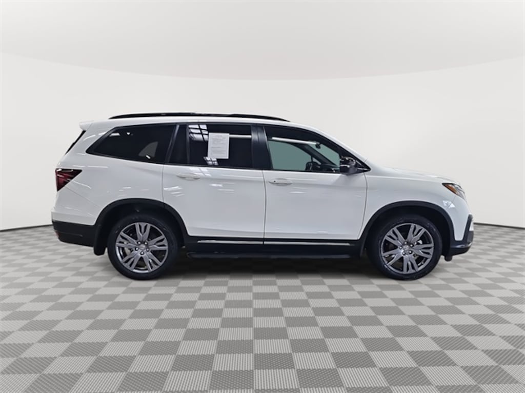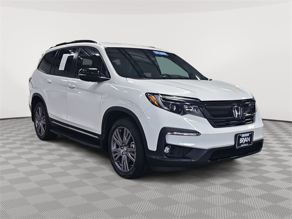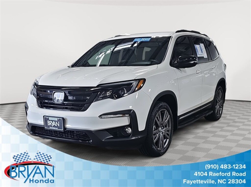 This 2022 Honda Pilot Sport in Platinum features: HondaTrue Certified Certified, AWD, HondaTrue Certified Certified, AWD, 3rd row seats: split-bench, 4-Wheel Disc Brakes, 4.33 Axle Ratio, 7 Speakers, A/V remote: CabinControl, ABS brakes, Air Conditioning, Alloy wheels, AM/FM radio: SiriusXM, Apple CarPlay/Android Auto, Auto High-beam Headlights, Automatic temperature control, Blind Spot Information (BSI) System warning, Brake assist, Bumpers: body-color, Cloth Seat Trim, Delay-off headlights, Driver door bin, Driver vanity mirror, Dual front impact airbags, Dual front side impact airbags, Electronic Stability Control, Emergency communication system: HondaLink Assist, Exterior Parking Camera Rear, Forward collision: Collision Mitigation Braking System (CMBS) + FCW mitigation, Four wheel independent suspension, Front anti-roll bar, Front Bucket Seats, Front Center Armrest, Front dual zone A/C, Front fog lights, Front reading lights, Fully automatic headlights, Heated door mirrors, Heated Front Bucket Seats, Heated front seats, Illuminated entry, Lane departure: Lane Keeping Assist System (LKAS) active, Low tire pressure warning, Occupant sensing airbag, Outside temperature display, Overhead airbag, Overhead console, Panic alarm, Passenger door bin, Passenger vanity mirror, Power door mirrors, Power driver seat, Power steering, Power windows, Radio data system, Radio: 215-Watt Audio System, Rear air conditioning, Rear anti-roll bar, Rear reading lights, Rear seat center armrest, Rear window defroster, Rear window wiper, Reclining 3rd row seat, Remote keyless entry, Roof rack: rails only, Security system, Speed control, Speed-sensing steering, Speed-Sensitive Wipers, Split folding rear seat, Spoiler, Steering wheel mounted audio controls, Tachometer, Telescoping steering wheel, Tilt steering wheel, Traction control, Trip computer, Turn signal indicator mirrors, Variably intermittent wipers, Wheels: 20" Pewter Gray Alloy, LOCAL AREA OWNER.