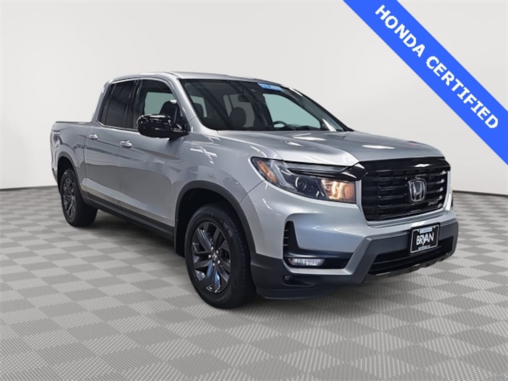 This 2022 Honda Ridgeline Sport in Lunar Silver Metallic features: HondaTrue Certified Certified, Black Cloth, HondaTrue Certified Certified, Black Cloth, 4-Wheel Disc Brakes, 4.33 Axle Ratio, 7 Speakers, ABS brakes, Air Conditioning, Alloy wheels, AM/FM radio, Apple CarPlay/Android Auto, Automatic temperature control, Bluetooth® Hands-Free Link, Brake assist, Bumpers: body-color, Delay-off headlights, Driver door bin, Driver vanity mirror, Driver's Seat Mounted Armrest, Dual front impact airbags, Dual front side impact airbags, Electronic Stability Control, Exterior Parking Camera Rear, Fabric Seat Trim, Forward collision: Collision Mitigation Braking System (CMBS) + FCW mitigation, Four wheel independent suspension, Front anti-roll bar, Front Bucket Seats, Front dual zone A/C, Front fog lights, Front reading lights, Fully automatic headlights, Garage door transmitter: HomeLink, Illuminated entry, Low tire pressure warning, Occupant sensing airbag, Outside temperature display, Overhead airbag, Overhead console, Panic alarm, Passenger door bin, Passenger seat mounted armrest, Passenger vanity mirror, Power door mirrors, Power steering, Power windows, Radio data system, Radio: 215-Watt Audio System w/7 Speakers, Rear air conditioning, Rear anti-roll bar, Rear reading lights, Rear seat center armrest, Rear step bumper, Rear window defroster, Remote keyless entry, Security system, Speed control, Speed-sensing steering, Split folding rear seat, Steering wheel mounted audio controls, Tachometer, Telescoping steering wheel, Tilt steering wheel, Traction control, Trip computer, Variably intermittent wipers, Wheels: 18" Shark Gray Alloy, ONE OWNER UNIT.