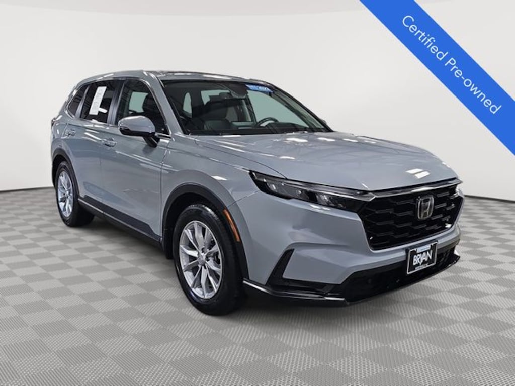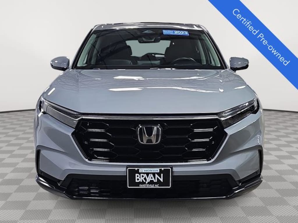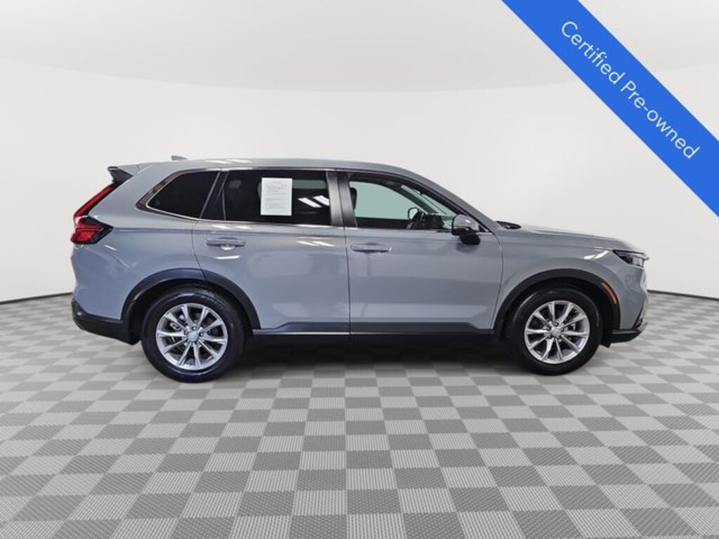 This 2023 Honda CR-V EX-L in Urban Gray Pearl features: HondaTrue Certified Certified, HondaTrue Certified Certified, 4-Wheel Disc Brakes, 5.64 Axle Ratio, 8 Speakers, ABS brakes, Adaptive Cruise Control: Adaptive Cruise Control (ACC) with Low-Speed Follow, Air Conditioning, Alloy wheels, AM/FM radio: SiriusXM, Auto High-beam Headlights, Auto-dimming Rear-View mirror, Automatic temperature control, Brake assist, Bumpers: body-color, Compass, Delay-off headlights, Driver door bin, Driver vanity mirror, Dual front impact airbags, Dual front side impact airbags, Electronic Stability Control, Exterior Parking Camera Rear, Four wheel independent suspension, Front anti-roll bar, Front Bucket Seats, Front Center Armrest, Front dual zone A/C, Front reading lights, Fully automatic headlights, Heated door mirrors, Heated Front Bucket Seats, Heated front seats, Illuminated entry, Knee airbag, Leather Seat Trim, Leather Shift Knob, Leather steering wheel, Low tire pressure warning, Memory seat, Occupant sensing airbag, Outside temperature display, Overhead airbag, Overhead console, Panic alarm, Passenger door bin, Passenger vanity mirror, Power door mirrors, Power driver seat, Power Liftgate, Power moonroof, Power passenger seat, Power steering, Power windows, Radio data system, Radio: 320-Watt AM/FM/HD/SiriusXM Audio System, Rear anti-roll bar, Rear reading lights, Rear seat center armrest, Rear side impact airbag, Rear window defroster, Rear window wiper, Remote keyless entry, Security system, Speed control, Speed-sensing steering, Speed-Sensitive Wipers, Split folding rear seat, Spoiler, Steering wheel mounted audio controls, Tachometer, Telescoping steering wheel, Tilt steering wheel, Traction control, Trip computer, Turn signal indicator mirrors, Variably intermittent wipers, Wheels: 18" Sparkle Silver Metallic, Wireless Apple CarPlay/Wireless Android Auto, LOCAL ONE OWNER.