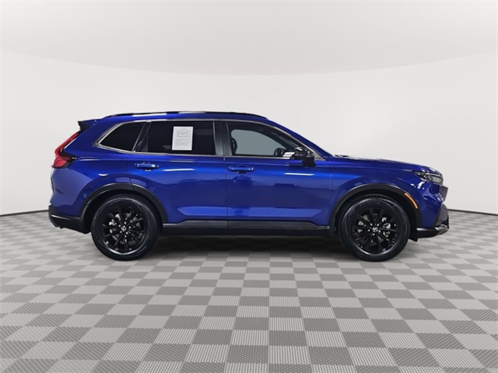 This 2023 Honda CR-V Hybrid Sport in Still Night Pearl features: HondaTrue Certified Certified, 2.0L I4 DOHC 16V, HondaTrue Certified Certified, 2.0L I4 DOHC 16V, 4-Wheel Disc Brakes, 4.438 Axle Ratio, 6 Speakers, ABS brakes, Adaptive Cruise Control: Adaptive Cruise Control (ACC) with Low-Speed Follow, Air Conditioning, Alloy wheels, Apple CarPlay/Android Auto, Auto High-beam Headlights, Automatic temperature control, Brake assist, Bumpers: body-color, Cloth Seat Trim, Compass, Delay-off headlights, Driver door bin, Driver vanity mirror, Dual front impact airbags, Dual front side impact airbags, Electronic Stability Control, Exterior Parking Camera Rear, Four wheel independent suspension, Front anti-roll bar, Front Bucket Seats, Front Center Armrest, Front dual zone A/C, Front reading lights, Fully automatic headlights, Heated door mirrors, Heated Front Bucket Seats, Heated front seats, Illuminated entry, Knee airbag, Leather Shift Knob, Leather steering wheel, Low tire pressure warning, Occupant sensing airbag, Outside temperature display, Overhead airbag, Overhead console, Panic alarm, Passenger door bin, Passenger vanity mirror, Power door mirrors, Power driver seat, Power moonroof, Power steering, Power windows, Radio data system, Radio: 240-Watt AM/FM Audio System, Rear anti-roll bar, Rear reading lights, Rear seat center armrest, Rear side impact airbag, Rear window defroster, Rear window wiper, Remote keyless entry, Security system, Speed control, Speed-sensing steering, Speed-Sensitive Wipers, Split folding rear seat, Spoiler, Steering wheel mounted audio controls, Telescoping steering wheel, Tilt steering wheel, Traction control, Trip computer, Turn signal indicator mirrors, Variably intermittent wipers, Wheels: 18" Berlina Black Alloy, LOCAL ONE OWNER.