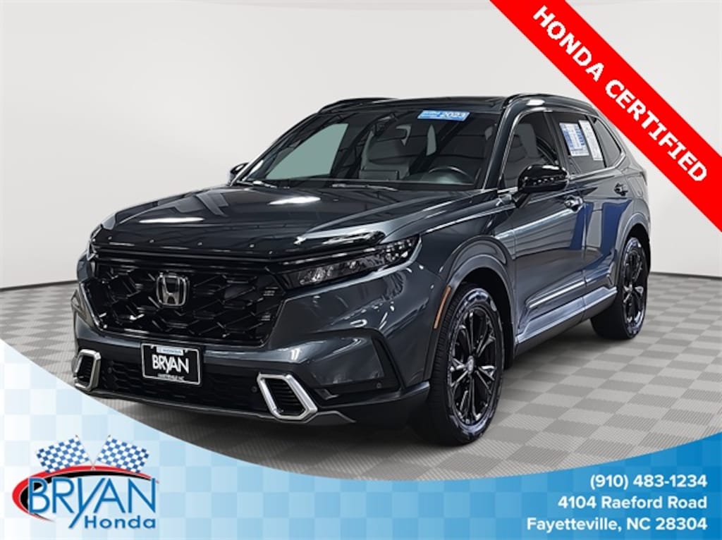 This 2023 Honda CR-V Hybrid Sport Touring in Grey features: HondaTrue Certified Certified, 2.0L I4 DOHC 16V, HondaTrue Certified Certified, 2.0L I4 DOHC 16V, 12 Speakers, 4-Wheel Disc Brakes, 4.438 Axle Ratio, ABS brakes, Adaptive Cruise Control: Adaptive Cruise Control (ACC) with Low-Speed Follow, Air Conditioning, Alloy wheels, AM/FM radio: SiriusXM, Auto High-beam Headlights, Auto-dimming Rear-View mirror, Automatic temperature control, Blind Spot Information (BSI) System warning, Brake assist, Bumpers: body-color, Compass, Delay-off headlights, Driver door bin, Driver vanity mirror, Dual front impact airbags, Dual front side impact airbags, Electronic Stability Control, Exterior Parking Camera Rear, Four wheel independent suspension, Front anti-roll bar, Front Bucket Seats, Front Center Armrest, Front dual zone A/C, Front reading lights, Fully automatic headlights, Heated door mirrors, Heated Front Bucket Seats w/Driver Memory, Heated front seats, Heated steering wheel, Illuminated entry, Knee airbag, Leather Seat Trim, Leather Shift Knob, Leather steering wheel, Low tire pressure warning, Memory seat, Navigation system: Honda Satellite-Linked Navigation System, Occupant sensing airbag, Outside temperature display, Overhead airbag, Overhead console, Panic alarm, Passenger door bin, Passenger vanity mirror, Power door mirrors, Power driver seat, Power Liftgate, Power moonroof, Power passenger seat, Power steering, Power windows, Radio data system, Radio: Bose Premium Sound System w/Navigation, Rain sensing wipers, Rear anti-roll bar, Rear reading lights, Rear seat center armrest, Rear side impact airbag, Rear window defroster, Rear window wiper, Remote keyless entry, Security system, Speed control, Speed-sensing steering, Speed-Sensitive Wipers, Split folding rear seat, Spoiler, Steering wheel mounted audio controls, Telescoping steering wheel, Tilt steering wheel, Traction control, Trip computer, Turn signal indicator mirrors, Variably intermittent wipers, Wheels: 19" Berlina Black Alloy, Wireless Apple CarPlay/Wireless Android Auto, LOCAL ONE OWNER.