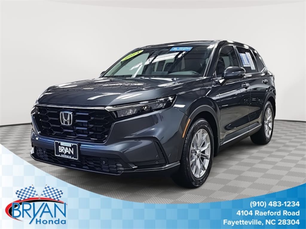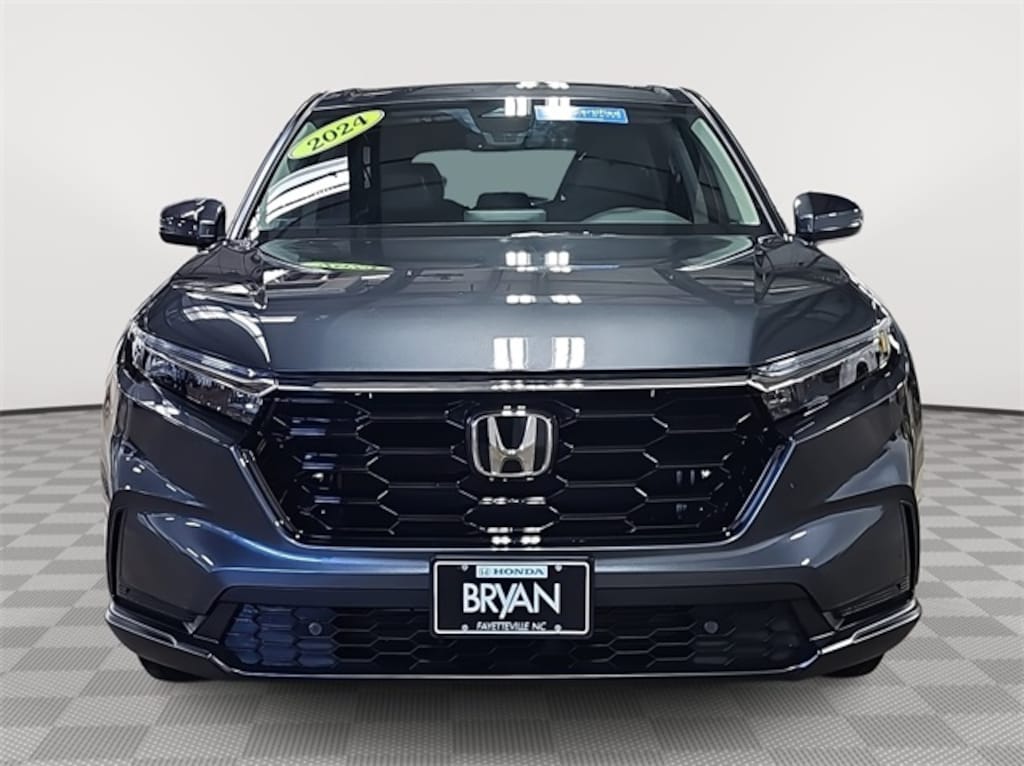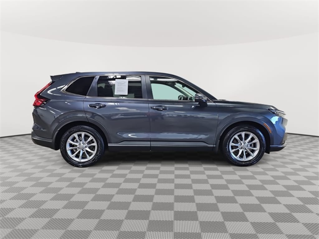 This 2024 Honda CR-V EX-L in Meteorite Gray Metallic features: HondaTrue Certified Certified, HondaTrue Certified Certified, 4-Wheel Disc Brakes, 5.64 Axle Ratio, 8 Speakers, ABS brakes, Adaptive Cruise Control: Adaptive Cruise Control (ACC) with Low-Speed Follow, Air Conditioning, Alloy wheels, AM/FM radio: SiriusXM, Auto High-beam Headlights, Auto-dimming Rear-View mirror, Automatic temperature control, Blind Spot Information (BSI) System warning, Brake assist, Bumpers: body-color, Compass, Delay-off headlights, Driver door bin, Driver vanity mirror, Dual front impact airbags, Dual front side impact airbags, Electronic Stability Control, Exterior Parking Camera Rear, Four wheel independent suspension, Front anti-roll bar, Front Bucket Seats, Front Center Armrest, Front dual zone A/C, Front reading lights, Fully automatic headlights, Heated door mirrors, Heated Front Bucket Seats, Heated front seats, Illuminated entry, Knee airbag, Leather Seat Trim, Leather Shift Knob, Leather steering wheel, Low tire pressure warning, Memory seat, Occupant sensing airbag, Outside temperature display, Overhead airbag, Overhead console, Panic alarm, Passenger door bin, Passenger vanity mirror, Power door mirrors, Power driver seat, Power Liftgate, Power moonroof, Power passenger seat, Power steering, Power windows, Radio data system, Radio: 320-Watt AM/FM/HD/SiriusXM Audio System, Rear anti-roll bar, Rear reading lights, Rear seat center armrest, Rear side impact airbag, Rear window defroster, Rear window wiper, Remote keyless entry, Security system, Speed control, Speed-sensing steering, Speed-Sensitive Wipers, Split folding rear seat, Spoiler, Steering wheel mounted audio controls, Tachometer, Telescoping steering wheel, Tilt steering wheel, Traction control, Trip computer, Turn signal indicator mirrors, Variably intermittent wipers, Wheels: 18" Sparkle Silver Metallic, Wireless Apple CarPlay/Wireless Android Auto.