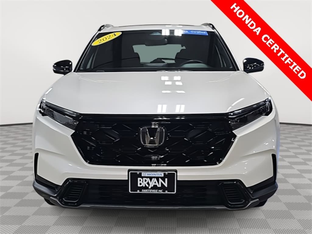 This 2024 Honda CR-V Hybrid Sport in Platinum White features: HondaTrue Certified Certified, 2.0L I4 DOHC 16V, HondaTrue Certified Certified, 2.0L I4 DOHC 16V, 4-Wheel Disc Brakes, 4.438 Axle Ratio, 6 Speakers, ABS brakes, Adaptive Cruise Control: Adaptive Cruise Control (ACC) with Low-Speed Follow, Air Conditioning, Alloy wheels, Apple CarPlay/Android Auto, Auto High-beam Headlights, Automatic temperature control, Blind Spot Information (BSI) System warning, Brake assist, Bumpers: body-color, Cloth Seat Trim, Compass, Delay-off headlights, Driver door bin, Driver vanity mirror, Dual front impact airbags, Dual front side impact airbags, Electronic Stability Control, Exterior Parking Camera Rear, Four wheel independent suspension, Front anti-roll bar, Front Bucket Seats, Front Center Armrest, Front dual zone A/C, Front reading lights, Fully automatic headlights, Heated door mirrors, Heated Front Bucket Seats, Heated front seats, Illuminated entry, Knee airbag, Leather Shift Knob, Leather steering wheel, Low tire pressure warning, Occupant sensing airbag, Outside temperature display, Overhead airbag, Overhead console, Panic alarm, Passenger door bin, Passenger vanity mirror, Power door mirrors, Power driver seat, Power moonroof, Power steering, Power windows, Radio data system, Radio: 240-Watt AM/FM Audio System, Rear anti-roll bar, Rear reading lights, Rear seat center armrest, Rear side impact airbag, Rear window defroster, Rear window wiper, Remote keyless entry, Security system, Speed control, Speed-sensing steering, Speed-Sensitive Wipers, Split folding rear seat, Spoiler, Steering wheel mounted audio controls, Telescoping steering wheel, Tilt steering wheel, Traction control, Trip computer, Turn signal indicator mirrors, Variably intermittent wipers, Wheels: 18" Berlina Black Alloy.
