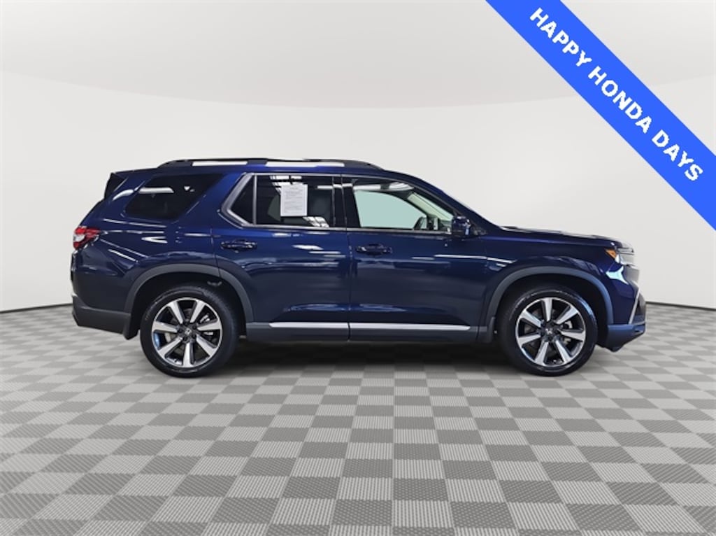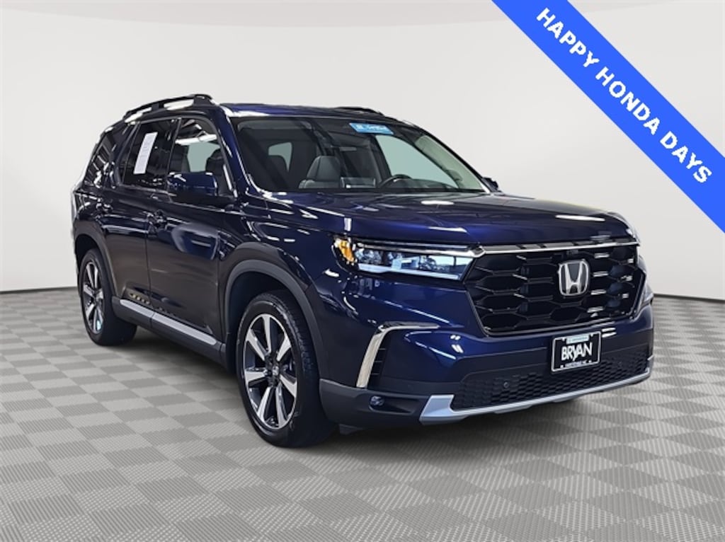 This 2024 Honda Pilot Elite in Obsidian Blue Pearl features: HondaTrue Certified Certified, AWD, HondaTrue Certified Certified, AWD, 12 Speakers, 3rd row seats: split-bench, 4-Wheel Disc Brakes, ABS brakes, Adaptive Cruise Control: Adaptive Cruise Control (ACC) with Low-Speed Follow, Air Conditioning, Alloy wheels, AM/FM radio: SiriusXM, Apple CarPlay/Android Auto, Auto High-beam Headlights, Auto-dimming door mirrors, Auto-dimming Rear-View mirror, Automatic temperature control, Axle Ratio: 4.167, Blind Spot Information (BSI) System warning, Brake assist, Bumpers: body-color, Compass, Delay-off headlights, Driver door bin, Driver vanity mirror, Dual front impact airbags, Dual front side impact airbags, Electronic Stability Control, Emergency communication system: HondaLink, Exterior Parking Camera Rear, Four wheel independent suspension, Front anti-roll bar, Front Bucket Seats, Front Center Armrest, Front dual zone A/C, Front fog lights, Front reading lights, Fully automatic headlights, Garage door transmitter: HomeLink, Heads-Up Display, Heated & Ventilated Front Bucket Seats, Heated door mirrors, Heated front seats, Heated rear seats, Heated steering wheel, Illuminated entry, Knee airbag, Lane departure: Lane Keeping Assist System (LKAS) active, Low tire pressure warning, Memory seat, Navigation system: Honda Satellite-Linked Navigation System, Occupant sensing airbag, Outside temperature display, Overhead airbag, Overhead console, Panic alarm, Passenger door bin, Passenger vanity mirror, Perforated Leather Seat Trim, Power door mirrors, Power driver seat, Power Liftgate, Power moonroof, Power passenger seat, Power steering, Power windows, Radio data system, Radio: BOSE Premium Sound System, Rain sensing wipers, Rear air conditioning, Rear anti-roll bar, Rear reading lights, Rear seat center armrest, Rear window defroster, Rear window wiper, Reclining 3rd row seat, Remote keyless entry, Security system, Speed control, Speed-sensing steering, Speed-Sensitive Wipers, Split folding rear seat, Spoiler, Steering wheel mounted audio controls, Tachometer, Telescoping steering wheel, Tilt steering wheel, Traction control, Trip computer, Turn signal indicator mirrors, Variably intermittent wipers, Ventilated front seats, Wheels: 20" Shark Gray Machine Face w/Blk Lug Nuts, LOCAL ONE OWNER.