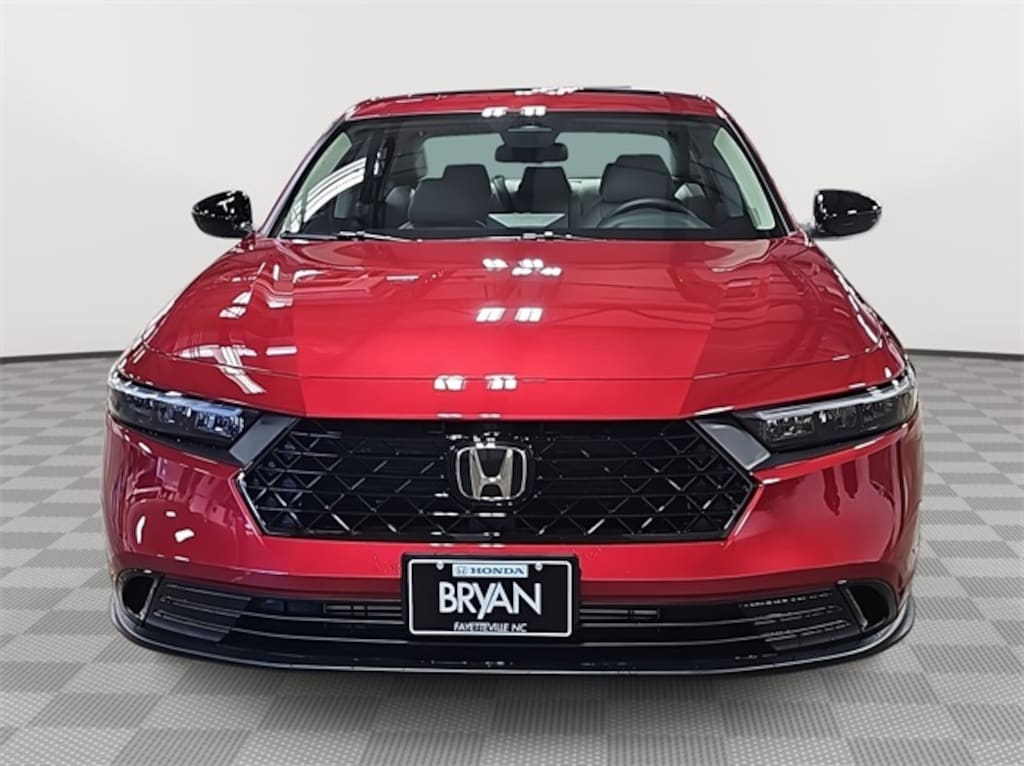This 2025 Honda Accord SE in Radiant Red Metallic features: Gray w/Fabric Seat Trim, Gray w/Fabric Seat Trim, 4-Wheel Disc Brakes, 8 Speakers, ABS brakes, Adaptive Cruise Control: Adaptive Cruise Control (ACC) with Low-Speed Follow, Air Conditioning, Alloy wheels, AM/FM radio, Apple CarPlay/Android Auto, Auto High-beam Headlights, Automatic temperature control, Blind Spot Information (BSI) System warning, Brake assist, Bumpers: body-color, Compass, Delay-off headlights, Driver door bin, Driver vanity mirror, Dual front impact airbags, Dual front side impact airbags, Electronic Stability Control, Emergency communication system: HondaLink Assist, Exterior Parking Camera Rear, Fabric Seat Trim, Four wheel independent suspension, Front anti-roll bar, Front Bucket Seats, Front Center Armrest, Front dual zone A/C, Front reading lights, Fully automatic headlights, Heated door mirrors, Heated Front Bucket Seats, Heated front seats, Illuminated entry, Knee airbag, Lane departure: Lane Keeping Assist System (LKAS) active, Low tire pressure warning, Occupant sensing airbag, Outside temperature display, Overhead airbag, Overhead console, Panic alarm, Passenger door bin, Passenger vanity mirror, Power door mirrors, Power driver seat, Power moonroof, Power steering, Power windows, Radio data system, Radio: 180-Watt Audio System, Rear anti-roll bar, Rear reading lights, Rear seat center armrest, Rear side impact airbag, Rear window defroster, Remote keyless entry, Security system, Speed control, Speed-sensing steering, Speed-Sensitive Wipers, Split folding rear seat, Steering wheel mounted audio controls, Tachometer, Telescoping steering wheel, Tilt steering wheel, Traction control, Trip computer, Variably intermittent wipers, Wheels: 17" x 7.5J Berlina Black.