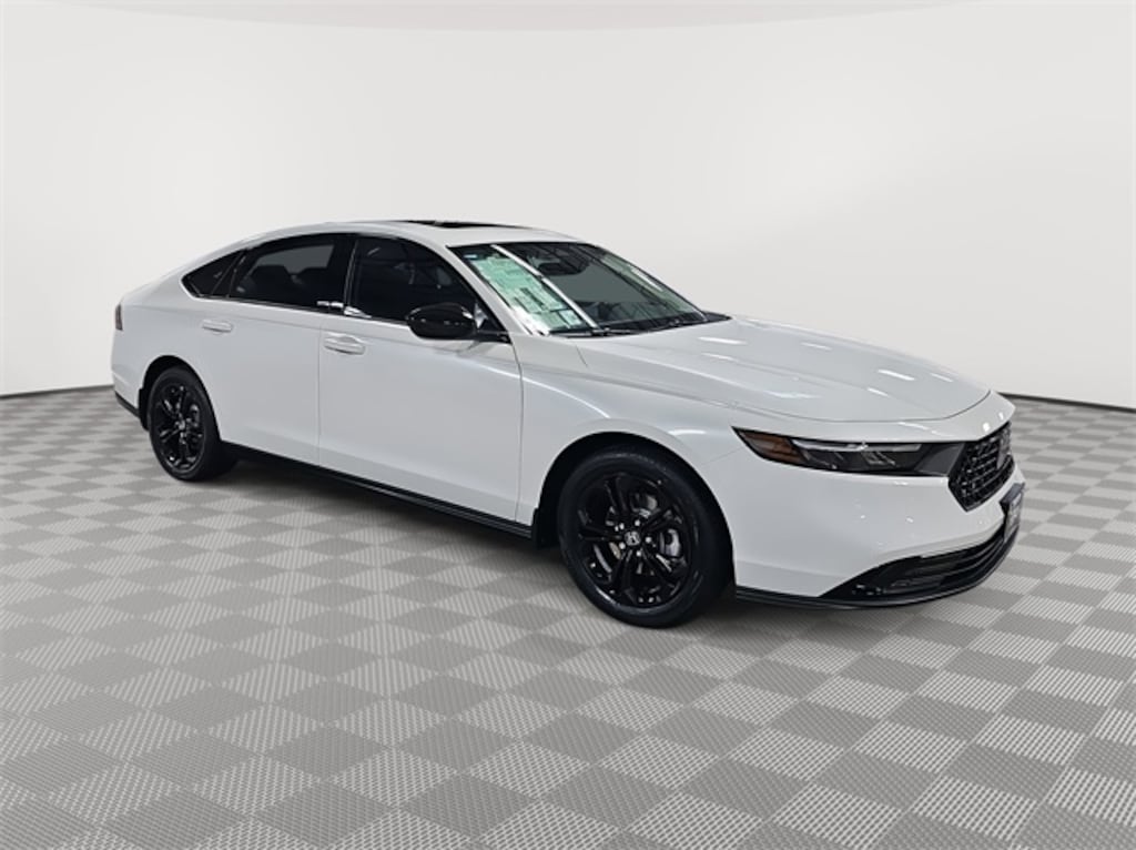 This 2025 Honda Accord SE in Platinum White Pearl features: Black w/Fabric Seat Trim, Black w/Fabric Seat Trim, 4-Wheel Disc Brakes, 8 Speakers, ABS brakes, Adaptive Cruise Control: Adaptive Cruise Control (ACC) with Low-Speed Follow, Air Conditioning, Alloy wheels, AM/FM radio, Apple CarPlay/Android Auto, Auto High-beam Headlights, Automatic temperature control, Blind Spot Information (BSI) System warning, Brake assist, Bumpers: body-color, Compass, Delay-off headlights, Driver door bin, Driver vanity mirror, Dual front impact airbags, Dual front side impact airbags, Electronic Stability Control, Emergency communication system: HondaLink Assist, Exterior Parking Camera Rear, Fabric Seat Trim, Four wheel independent suspension, Front anti-roll bar, Front Bucket Seats, Front Center Armrest, Front dual zone A/C, Front reading lights, Fully automatic headlights, Heated door mirrors, Heated Front Bucket Seats, Heated front seats, Illuminated entry, Knee airbag, Lane departure: Lane Keeping Assist System (LKAS) active, Low tire pressure warning, Occupant sensing airbag, Outside temperature display, Overhead airbag, Overhead console, Panic alarm, Passenger door bin, Passenger vanity mirror, Power door mirrors, Power driver seat, Power moonroof, Power steering, Power windows, Radio data system, Radio: 180-Watt Audio System, Rear anti-roll bar, Rear reading lights, Rear seat center armrest, Rear side impact airbag, Rear window defroster, Remote keyless entry, Security system, Speed control, Speed-sensing steering, Speed-Sensitive Wipers, Split folding rear seat, Steering wheel mounted audio controls, Tachometer, Telescoping steering wheel, Tilt steering wheel, Traction control, Trip computer, Variably intermittent wipers, Wheels: 17" x 7.5J Berlina Black.