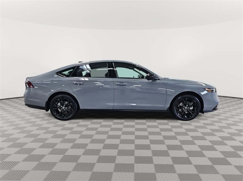 This 2025 Honda Accord SE in Urban Gray Pearl features: Black w/Fabric Seat Trim, Black w/Fabric Seat Trim, 4-Wheel Disc Brakes, 8 Speakers, ABS brakes, Adaptive Cruise Control: Adaptive Cruise Control (ACC) with Low-Speed Follow, Air Conditioning, Alloy wheels, AM/FM radio, Apple CarPlay/Android Auto, Auto High-beam Headlights, Automatic temperature control, Blind Spot Information (BSI) System warning, Brake assist, Bumpers: body-color, Compass, Delay-off headlights, Driver door bin, Driver vanity mirror, Dual front impact airbags, Dual front side impact airbags, Electronic Stability Control, Emergency communication system: HondaLink Assist, Exterior Parking Camera Rear, Fabric Seat Trim, Four wheel independent suspension, Front anti-roll bar, Front Bucket Seats, Front Center Armrest, Front dual zone A/C, Front reading lights, Fully automatic headlights, Heated door mirrors, Heated Front Bucket Seats, Heated front seats, Illuminated entry, Knee airbag, Lane departure: Lane Keeping Assist System (LKAS) active, Low tire pressure warning, Occupant sensing airbag, Outside temperature display, Overhead airbag, Overhead console, Panic alarm, Passenger door bin, Passenger vanity mirror, Power door mirrors, Power driver seat, Power moonroof, Power steering, Power windows, Radio data system, Radio: 180-Watt Audio System, Rear anti-roll bar, Rear reading lights, Rear seat center armrest, Rear side impact airbag, Rear window defroster, Remote keyless entry, Security system, Speed control, Speed-sensing steering, Speed-Sensitive Wipers, Split folding rear seat, Steering wheel mounted audio controls, Tachometer, Telescoping steering wheel, Tilt steering wheel, Traction control, Trip computer, Variably intermittent wipers, Wheels: 17" x 7.5J Berlina Black.