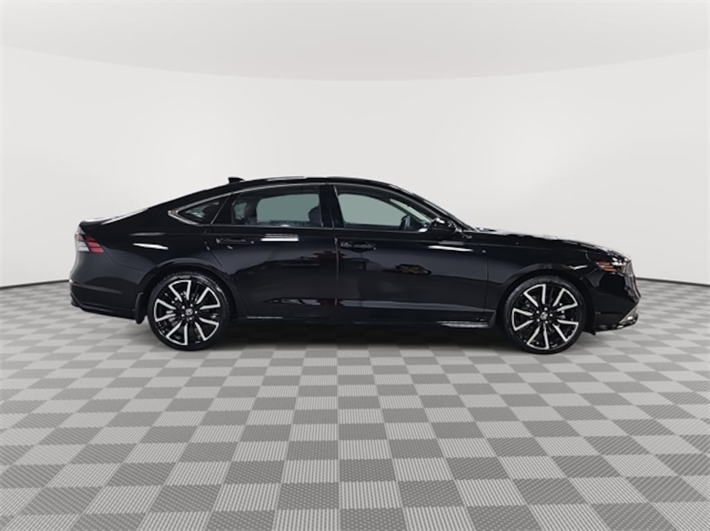 This 2025 Honda Accord Hybrid Touring in Crystal Black Pearl features: 2.0L I4 DOHC 16V, 2.0L I4 DOHC 16V, 12 Speakers, 4-Wheel Disc Brakes, ABS brakes, Adaptive Cruise Control: Adaptive Cruise Control (ACC) with Low-Speed Follow, Air Conditioning, Alloy wheels, AM/FM radio, Apple CarPlay/Android Auto, Auto High-beam Headlights, Auto-dimming Rear-View mirror, Automatic temperature control, Blind Spot Information (BSI) System warning, Bose Premium Sound System, Brake assist, Bumpers: body-color, Compass, Delay-off headlights, Driver door bin, Driver vanity mirror, Dual front impact airbags, Dual front side impact airbags, Electronic Stability Control, Emergency communication system: HondaLink, Exterior Parking Camera Rear, Four wheel independent suspension, Front anti-roll bar, Front Bucket Seats, Front Center Armrest, Front dual zone A/C, Front reading lights, Fully automatic headlights, Heads-Up Display, Heated & Ventilated Front Bucket Seats, Heated door mirrors, Heated front seats, Heated rear seats, Heated steering wheel, Illuminated entry, Knee airbag, Lane departure: Lane Keeping Assist System (LKAS) active, Leather Shift Knob, Leather steering wheel, Leather-Trimmed Seat Trim, Low tire pressure warning, Memory seat, Navigation System, Occupant sensing airbag, Outside temperature display, Overhead airbag, Overhead console, Panic alarm, Passenger door bin, Passenger vanity mirror, Power door mirrors, Power driver seat, Power moonroof, Power passenger seat, Power steering, Power windows, Radio data system, Rain sensing wipers, Rear anti-roll bar, Rear reading lights, Rear seat center armrest, Rear side impact airbag, Rear window defroster, Remote keyless entry, Security system, Speed control, Speed-sensing steering, Speed-Sensitive Wipers, Split folding rear seat, Steering wheel mounted audio controls, Telescoping steering wheel, Tilt steering wheel, Traction control, Trip computer, Turn signal indicator mirrors, Variably intermittent wipers, Ventilated front seats, Wheels: 19" x 8.5J Berlina Black.