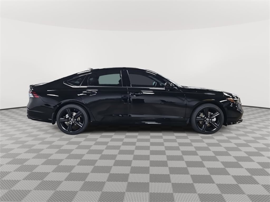 This 2025 Honda Accord Hybrid Sport-L in Crystal Black Pearl features: 2.0L I4 DOHC 16V, 2.0L I4 DOHC 16V, 4-Wheel Disc Brakes, 8 Speakers, ABS brakes, Adaptive Cruise Control: Adaptive Cruise Control (ACC) with Low-Speed Follow, Air Conditioning, Alloy wheels, AM/FM radio, Apple CarPlay/Android Auto, Auto High-beam Headlights, Automatic temperature control, Blind Spot Information (BSI) System warning, Brake assist, Bumpers: body-color, Compass, Delay-off headlights, Driver door bin, Driver vanity mirror, Dual front impact airbags, Dual front side impact airbags, Electronic Stability Control, Emergency communication system: HondaLink, Exterior Parking Camera Rear, Four wheel independent suspension, Front anti-roll bar, Front Bucket Seats, Front Center Armrest, Front dual zone A/C, Front reading lights, Fully automatic headlights, Heated Front Bucket Seats, Heated front seats, Illuminated entry, Knee airbag, Lane departure: Lane Keeping Assist System (LKAS) active, Leather Shift Knob, Leather steering wheel, Leather-Trimmed Seat Trim, Low tire pressure warning, Memory seat, Occupant sensing airbag, Outside temperature display, Overhead airbag, Overhead console, Panic alarm, Passenger door bin, Passenger vanity mirror, Power door mirrors, Power driver seat, Power moonroof, Power passenger seat, Power steering, Power windows, Radio data system, Radio: 180-Watt Audio System, Rear anti-roll bar, Rear reading lights, Rear seat center armrest, Rear side impact airbag, Rear window defroster, Remote keyless entry, Security system, Speed control, Speed-sensing steering, Speed-Sensitive Wipers, Split folding rear seat, Spoiler, Steering wheel mounted audio controls, Telescoping steering wheel, Tilt steering wheel, Traction control, Trip computer, Variably intermittent wipers, Wheels: 19" x 8.5J Matte Berlina Black.