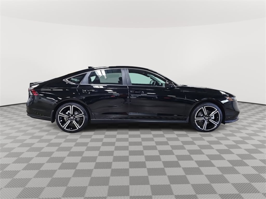 This 2025 Honda Accord Hybrid Sport in Crystal Black Pearl features: 2.0L I4 DOHC 16V, 2.0L I4 DOHC 16V, 4-Wheel Disc Brakes, 8 Speakers, ABS brakes, Adaptive Cruise Control: Adaptive Cruise Control (ACC) with Low-Speed Follow, Air Conditioning, Alloy wheels, AM/FM radio, Apple CarPlay/Android Auto, Auto High-beam Headlights, Automatic temperature control, Blind Spot Information (BSI) System warning, Brake assist, Bumpers: body-color, Compass, Delay-off headlights, Driver door bin, Driver vanity mirror, Dual front impact airbags, Dual front side impact airbags, Electronic Stability Control, Emergency communication system: HondaLink, Exterior Parking Camera Rear, Fabric Seat Trim, Four wheel independent suspension, Front anti-roll bar, Front Bucket Seats, Front Center Armrest, Front dual zone A/C, Front reading lights, Fully automatic headlights, Heated Front Bucket Seats, Heated front seats, Illuminated entry, Knee airbag, Lane departure: Lane Keeping Assist System (LKAS) active, Leather Shift Knob, Leather steering wheel, Low tire pressure warning, Occupant sensing airbag, Outside temperature display, Overhead airbag, Overhead console, Panic alarm, Passenger door bin, Passenger vanity mirror, Power door mirrors, Power driver seat, Power moonroof, Power steering, Power windows, Radio data system, Radio: 180-Watt Audio System, Rear anti-roll bar, Rear reading lights, Rear seat center armrest, Rear side impact airbag, Rear window defroster, Remote keyless entry, Security system, Speed control, Speed-sensing steering, Speed-Sensitive Wipers, Split folding rear seat, Spoiler, Steering wheel mounted audio controls, Telescoping steering wheel, Tilt steering wheel, Traction control, Trip computer, Variably intermittent wipers, Wheels: 19" x 8.5J Berlina Black.