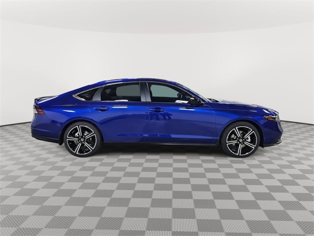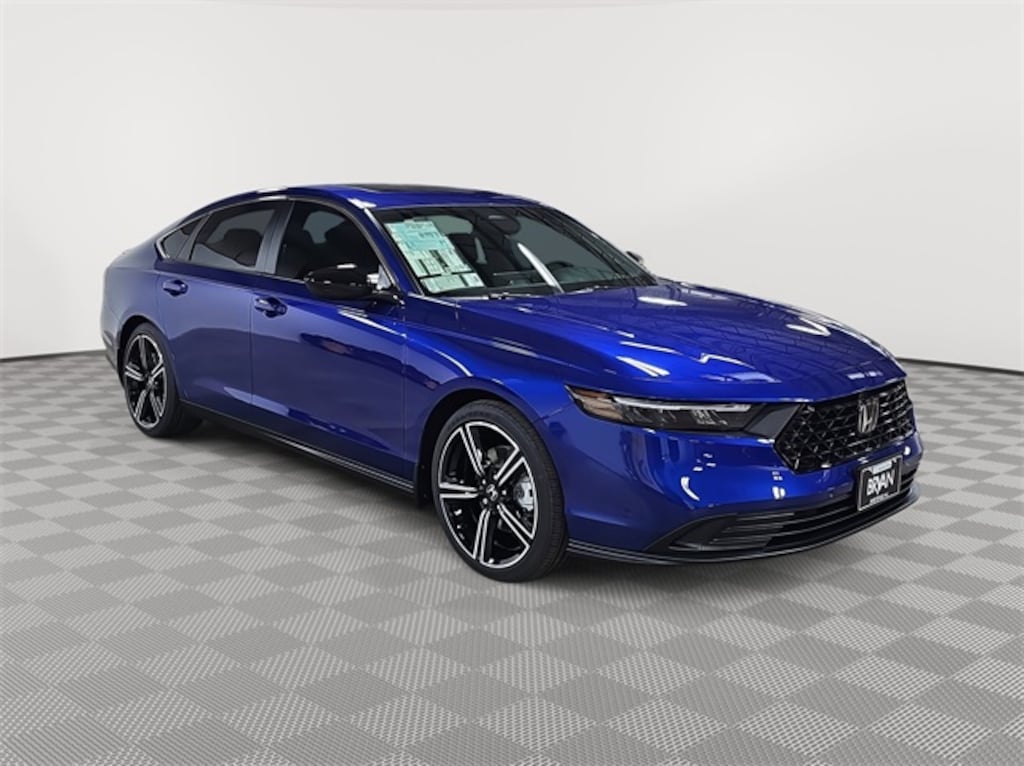 This 2025 Honda Accord Hybrid Sport in Still Night Pearl features: 2.0L I4 DOHC 16V, 2.0L I4 DOHC 16V, 4-Wheel Disc Brakes, 8 Speakers, ABS brakes, Adaptive Cruise Control: Adaptive Cruise Control (ACC) with Low-Speed Follow, Air Conditioning, Alloy wheels, AM/FM radio, Apple CarPlay/Android Auto, Auto High-beam Headlights, Automatic temperature control, Blind Spot Information (BSI) System warning, Brake assist, Bumpers: body-color, Compass, Delay-off headlights, Driver door bin, Driver vanity mirror, Dual front impact airbags, Dual front side impact airbags, Electronic Stability Control, Emergency communication system: HondaLink, Exterior Parking Camera Rear, Fabric Seat Trim, Four wheel independent suspension, Front anti-roll bar, Front Bucket Seats, Front Center Armrest, Front dual zone A/C, Front reading lights, Fully automatic headlights, Heated Front Bucket Seats, Heated front seats, Illuminated entry, Knee airbag, Lane departure: Lane Keeping Assist System (LKAS) active, Leather Shift Knob, Leather steering wheel, Low tire pressure warning, Occupant sensing airbag, Outside temperature display, Overhead airbag, Overhead console, Panic alarm, Passenger door bin, Passenger vanity mirror, Power door mirrors, Power driver seat, Power moonroof, Power steering, Power windows, Radio data system, Radio: 180-Watt Audio System, Rear anti-roll bar, Rear reading lights, Rear seat center armrest, Rear side impact airbag, Rear window defroster, Remote keyless entry, Security system, Speed control, Speed-sensing steering, Speed-Sensitive Wipers, Split folding rear seat, Spoiler, Steering wheel mounted audio controls, Telescoping steering wheel, Tilt steering wheel, Traction control, Trip computer, Variably intermittent wipers, Wheels: 19" x 8.5J Berlina Black.