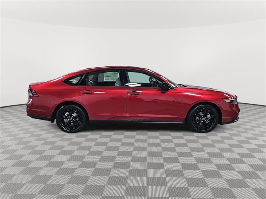 This 2025 Honda Accord SE in Radiant Red Metallic features: Gray w/Fabric Seat Trim, Gray w/Fabric Seat Trim, 4-Wheel Disc Brakes, 8 Speakers, ABS brakes, Adaptive Cruise Control: Adaptive Cruise Control (ACC) with Low-Speed Follow, Air Conditioning, Alloy wheels, AM/FM radio, Apple CarPlay/Android Auto, Auto High-beam Headlights, Automatic temperature control, Blind Spot Information (BSI) System warning, Brake assist, Bumpers: body-color, Compass, Delay-off headlights, Driver door bin, Driver vanity mirror, Dual front impact airbags, Dual front side impact airbags, Electronic Stability Control, Emergency communication system: HondaLink Assist, Exterior Parking Camera Rear, Fabric Seat Trim, Four wheel independent suspension, Front anti-roll bar, Front Bucket Seats, Front Center Armrest, Front dual zone A/C, Front reading lights, Fully automatic headlights, Heated door mirrors, Heated Front Bucket Seats, Heated front seats, Illuminated entry, Knee airbag, Lane departure: Lane Keeping Assist System (LKAS) active, Low tire pressure warning, Occupant sensing airbag, Outside temperature display, Overhead airbag, Overhead console, Panic alarm, Passenger door bin, Passenger vanity mirror, Power door mirrors, Power driver seat, Power moonroof, Power steering, Power windows, Radio data system, Radio: 180-Watt Audio System, Rear anti-roll bar, Rear reading lights, Rear seat center armrest, Rear side impact airbag, Rear window defroster, Remote keyless entry, Security system, Speed control, Speed-sensing steering, Speed-Sensitive Wipers, Split folding rear seat, Steering wheel mounted audio controls, Tachometer, Telescoping steering wheel, Tilt steering wheel, Traction control, Trip computer, Variably intermittent wipers, Wheels: 17" x 7.5J Berlina Black.