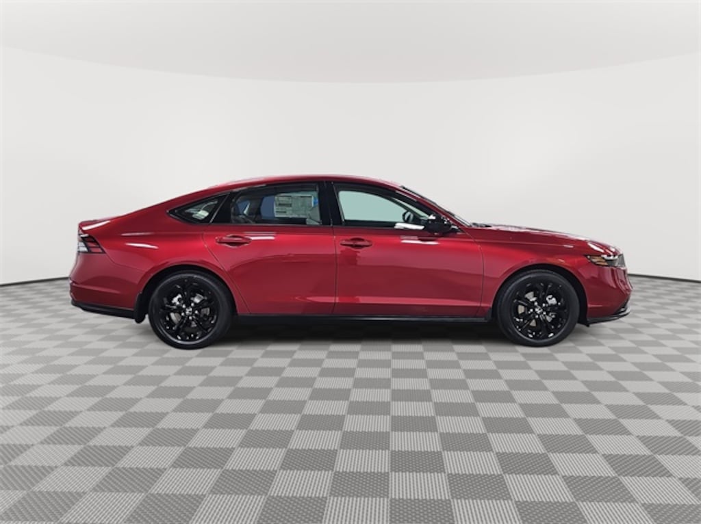 This 2025 Honda Accord SE in Radiant Red Metallic features: Gray w/Fabric Seat Trim, Gray w/Fabric Seat Trim, 4-Wheel Disc Brakes, 8 Speakers, ABS brakes, Adaptive Cruise Control: Adaptive Cruise Control (ACC) with Low-Speed Follow, Air Conditioning, Alloy wheels, AM/FM radio, Apple CarPlay/Android Auto, Auto High-beam Headlights, Automatic temperature control, Blind Spot Information (BSI) System warning, Brake assist, Bumpers: body-color, Compass, Delay-off headlights, Driver door bin, Driver vanity mirror, Dual front impact airbags, Dual front side impact airbags, Electronic Stability Control, Emergency communication system: HondaLink Assist, Exterior Parking Camera Rear, Fabric Seat Trim, Four wheel independent suspension, Front anti-roll bar, Front Bucket Seats, Front Center Armrest, Front dual zone A/C, Front reading lights, Fully automatic headlights, Heated door mirrors, Heated Front Bucket Seats, Heated front seats, Illuminated entry, Knee airbag, Lane departure: Lane Keeping Assist System (LKAS) active, Low tire pressure warning, Occupant sensing airbag, Outside temperature display, Overhead airbag, Overhead console, Panic alarm, Passenger door bin, Passenger vanity mirror, Power door mirrors, Power driver seat, Power moonroof, Power steering, Power windows, Radio data system, Radio: 180-Watt Audio System, Rear anti-roll bar, Rear reading lights, Rear seat center armrest, Rear side impact airbag, Rear window defroster, Remote keyless entry, Security system, Speed control, Speed-sensing steering, Speed-Sensitive Wipers, Split folding rear seat, Steering wheel mounted audio controls, Tachometer, Telescoping steering wheel, Tilt steering wheel, Traction control, Trip computer, Variably intermittent wipers, Wheels: 17" x 7.5J Berlina Black.