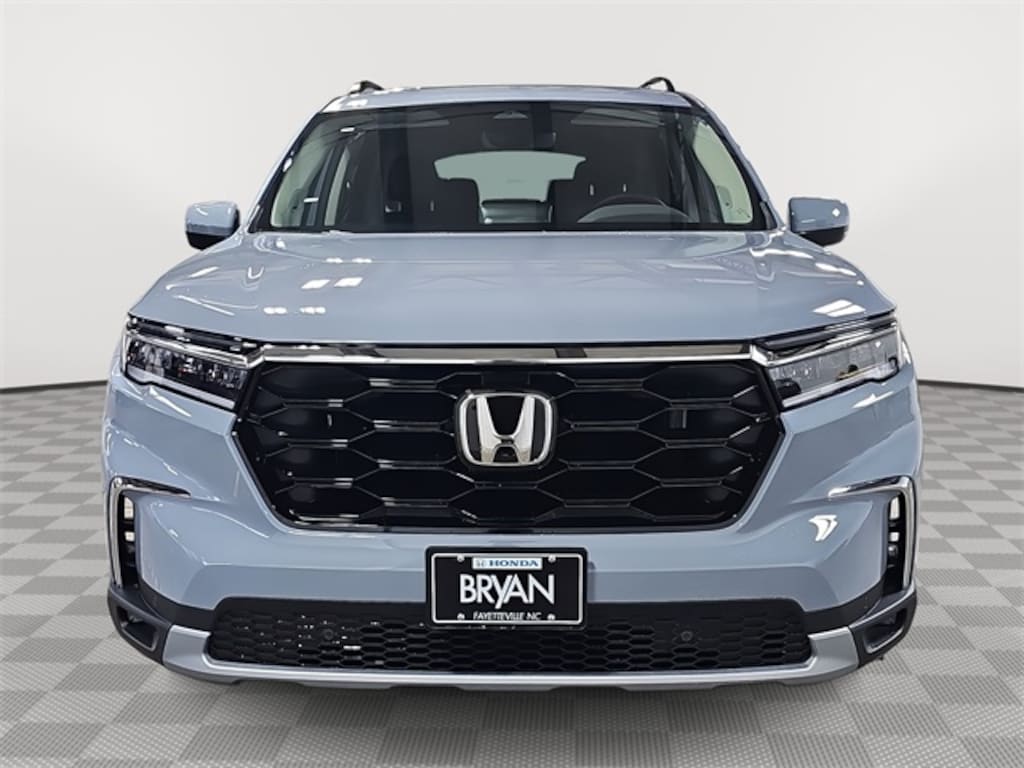 This 2025 Honda Pilot Touring in Sonic Gray Pearl features: 12 Speakers, 3rd row seats: split-bench, 4-Wheel Disc Brakes, 4.167 Axle Ratio, ABS brakes, Adaptive Cruise Control: Adaptive Cruise Control (ACC) with Low-Speed Follow, Air Conditioning, Alloy wheels, AM/FM radio: SiriusXM, Apple CarPlay/Android Auto, Auto High-beam Headlights, Auto-dimming Rear-View mirror, Automatic temperature control, Blind Spot Information (BSI) System warning, Bose Premium Sound System, Brake assist, Bumpers: body-color, Compass, Delay-off headlights, Driver door bin, Driver vanity mirror, Dual front impact airbags, Dual front side impact airbags, Electronic Stability Control, Emergency communication system: HondaLink, Exterior Parking Camera Rear, Four wheel independent suspension, Front anti-roll bar, Front Bucket Seats, Front Center Armrest, Front dual zone A/C, Front fog lights, Front reading lights, Fully automatic headlights, Garage door transmitter: HomeLink, Heated door mirrors, Heated Front Bucket Seats, Heated front seats, Honda Satellite-Linked Navigation System, HondaLink Subscription Services, Illuminated entry, Knee airbag, Lane departure: Lane Keeping Assist System (LKAS) active, Leather Seat Trim, Low tire pressure warning, Memory seat, Navigation system: Honda Satellite-Linked Navigation System, Occupant sensing airbag, Outside temperature display, Overhead airbag, Overhead console, Panic alarm, Passenger door bin, Passenger vanity mirror, Power door mirrors, Power driver seat, Power Liftgate, Power moonroof, Power passenger seat, Power steering, Power windows, Radio data system, Rear air conditioning, Rear anti-roll bar, Rear reading lights, Rear seat center armrest, Rear window defroster, Rear window wiper, Reclining 3rd row seat, Remote keyless entry, Security system, SiriusXM, Speed control, Speed-sensing steering, Speed-Sensitive Wipers, Split folding rear seat, Spoiler, Steering wheel mounted audio controls, Tachometer, Telescoping steering wheel, Tilt steering wheel, Traction control, Trip computer, Turn signal indicator mirrors, Variably intermittent wipers, Wheels: 20" Shark Gray Machine Face w/Blk Lug Nuts.