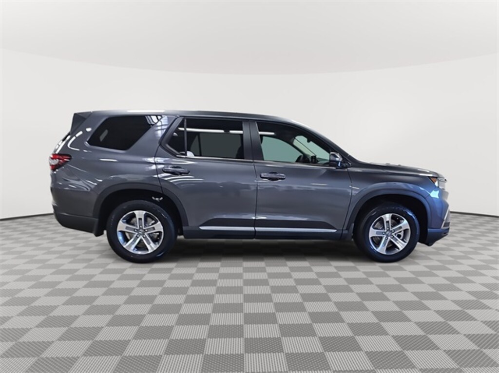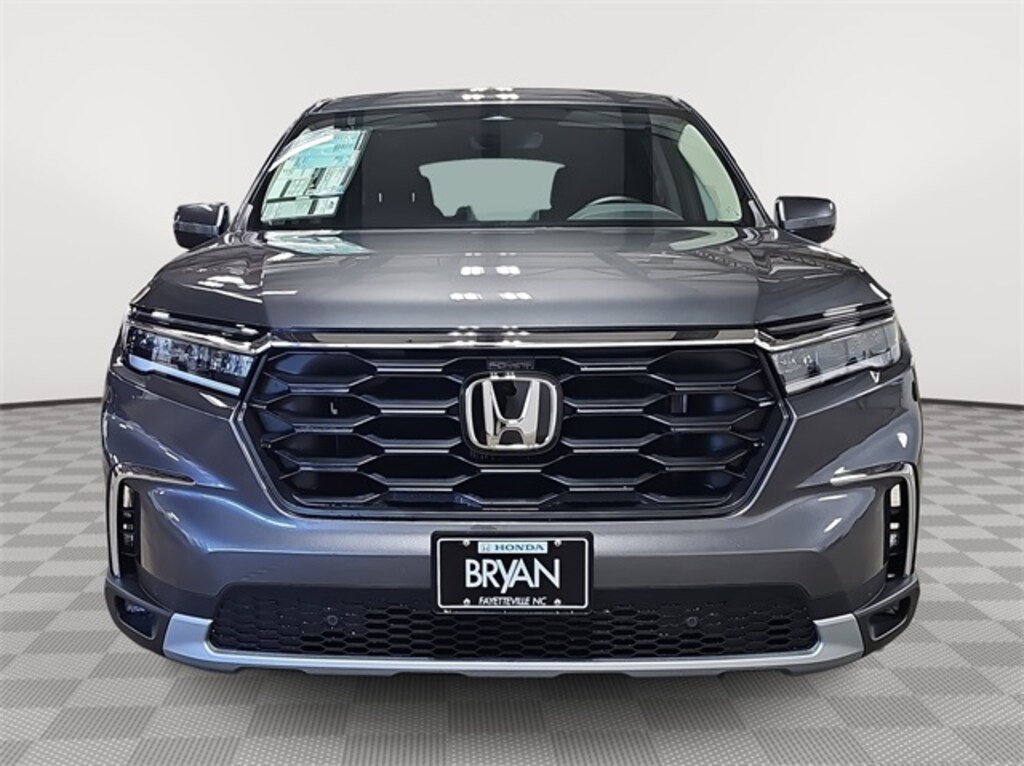 This 2025 Honda Pilot EX-L in Modern Steel Metallic features: AWD, AWD, 3rd row seats: split-bench, 4-Wheel Disc Brakes, 4.167 Axle Ratio, 9 Speakers, ABS brakes, Adaptive Cruise Control: Adaptive Cruise Control (ACC) with Low-Speed Follow, Air Conditioning, Alloy wheels, AM/FM radio: SiriusXM, Apple CarPlay/Android Auto, Auto High-beam Headlights, Auto-dimming Rear-View mirror, Automatic temperature control, Blind Spot Information (BSI) System warning, Brake assist, Bumpers: body-color, Delay-off headlights, Driver door bin, Driver vanity mirror, Dual front impact airbags, Dual front side impact airbags, Electronic Stability Control, Emergency communication system: HondaLink Assist, Exterior Parking Camera Rear, Four wheel independent suspension, Front anti-roll bar, Front Bucket Seats, Front Center Armrest, Front dual zone A/C, Front fog lights, Front reading lights, Fully automatic headlights, Garage door transmitter: HomeLink, Heated door mirrors, Heated Front Bucket Seats, Heated front seats, Illuminated entry, Knee airbag, Lane departure: Lane Keeping Assist System (LKAS) active, Leather Seat Trim, Low tire pressure warning, Memory seat, Occupant sensing airbag, Outside temperature display, Overhead airbag, Overhead console, Panic alarm, Passenger door bin, Passenger vanity mirror, Power door mirrors, Power driver seat, Power Liftgate, Power passenger seat, Power steering, Power windows, Radio data system, Radio: 245-Watt Audio System, Rear air conditioning, Rear anti-roll bar, Rear reading lights, Rear seat center armrest, Rear window defroster, Rear window wiper, Reclining 3rd row seat, Remote keyless entry, Security system, SiriusXM, Speed control, Speed-sensing steering, Speed-Sensitive Wipers, Split folding rear seat, Spoiler, Steering wheel mounted audio controls, Tachometer, Telescoping steering wheel, Tilt steering wheel, Traction control, Trip computer, Turn signal indicator mirrors, Variably intermittent wipers, Wheels: 18" Pewter Gray Machined Face.
