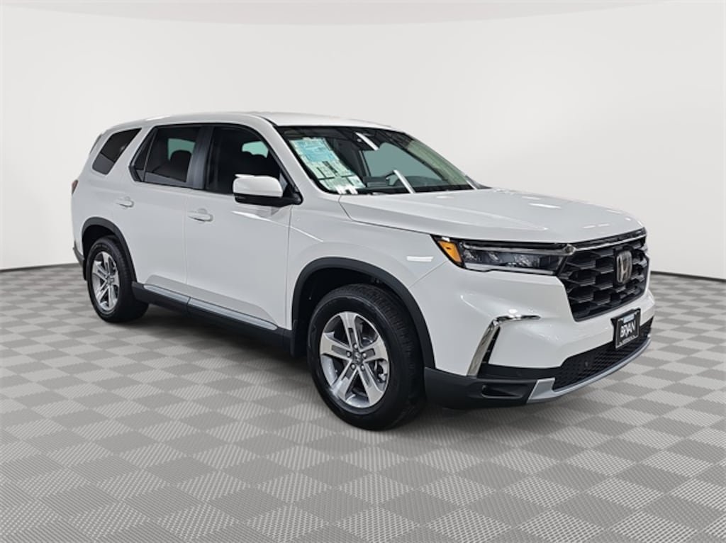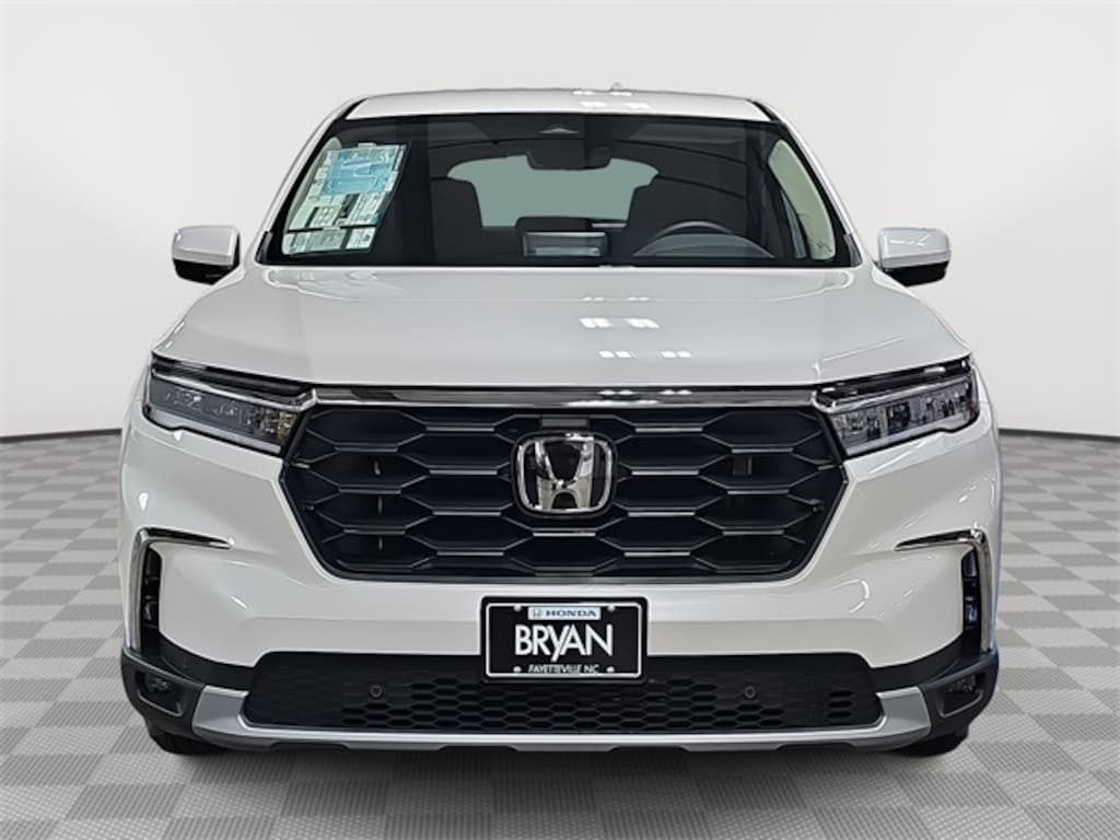 This 2025 Honda Pilot EX-L in Platinum White Pearl features: 3rd row seats: split-bench, 4-Wheel Disc Brakes, 4.167 Axle Ratio, 9 Speakers, ABS brakes, Adaptive Cruise Control: Adaptive Cruise Control (ACC) with Low-Speed Follow, Air Conditioning, Alloy wheels, AM/FM radio: SiriusXM, Apple CarPlay/Android Auto, Auto High-beam Headlights, Auto-dimming Rear-View mirror, Automatic temperature control, Blind Spot Information (BSI) System warning, Brake assist, Bumpers: body-color, Delay-off headlights, Driver door bin, Driver vanity mirror, Dual front impact airbags, Dual front side impact airbags, Electronic Stability Control, Emergency communication system: HondaLink Assist, Exterior Parking Camera Rear, Four wheel independent suspension, Front anti-roll bar, Front Bucket Seats, Front Center Armrest, Front dual zone A/C, Front fog lights, Front reading lights, Fully automatic headlights, Garage door transmitter: HomeLink, Heated door mirrors, Heated Front Bucket Seats, Heated front seats, Illuminated entry, Knee airbag, Lane departure: Lane Keeping Assist System (LKAS) active, Leather Seat Trim, Low tire pressure warning, Memory seat, Occupant sensing airbag, Outside temperature display, Overhead airbag, Overhead console, Panic alarm, Passenger door bin, Passenger vanity mirror, Power door mirrors, Power driver seat, Power Liftgate, Power passenger seat, Power steering, Power windows, Radio data system, Radio: 245-Watt Audio System, Rear air conditioning, Rear anti-roll bar, Rear reading lights, Rear seat center armrest, Rear window defroster, Rear window wiper, Reclining 3rd row seat, Remote keyless entry, Security system, SiriusXM, Speed control, Speed-sensing steering, Speed-Sensitive Wipers, Split folding rear seat, Spoiler, Steering wheel mounted audio controls, Tachometer, Telescoping steering wheel, Tilt steering wheel, Traction control, Trip computer, Turn signal indicator mirrors, Variably intermittent wipers, Wheels: 18" Pewter Gray Machined Face.