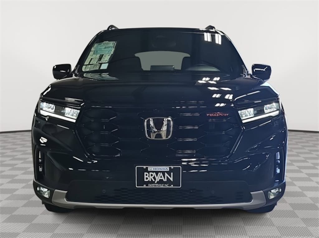 This 2025 Honda Pilot TrailSport in Crystal Black Pearl features: AWD, AWD, 3rd row seats: split-bench, 4-Wheel Disc Brakes, 4.167 Axle Ratio, 9 Speakers, ABS brakes, Adaptive Cruise Control: Adaptive Cruise Control (ACC) with Low-Speed Follow, Air Conditioning, Alloy wheels, AM/FM radio: SiriusXM, Apple CarPlay/Android Auto, Auto High-beam Headlights, Auto-dimming Rear-View mirror, Automatic temperature control, Blind Spot Information (BSI) System warning, Brake assist, Bumpers: body-color, Delay-off headlights, Driver door bin, Driver vanity mirror, Dual front impact airbags, Dual front side impact airbags, Durable Synthetic Leather Seat Trim, Electronic Stability Control, Emergency communication system: HondaLink Assist, Exterior Parking Camera Rear, Four wheel independent suspension, Front anti-roll bar, Front Bucket Seats, Front Center Armrest, Front dual zone A/C, Front fog lights, Front reading lights, Fully automatic headlights, Garage door transmitter: HomeLink, Heated door mirrors, Heated Front Bucket Seats, Heated front seats, Illuminated entry, Knee airbag, Lane departure: Lane Keeping Assist System (LKAS) active, Low tire pressure warning, Memory seat, Occupant sensing airbag, Outside temperature display, Overhead airbag, Overhead console, Panic alarm, Passenger door bin, Passenger vanity mirror, Power door mirrors, Power driver seat, Power Liftgate, Power moonroof, Power passenger seat, Power steering, Power windows, Radio data system, Radio: 245-Watt Audio System, Rear air conditioning, Rear anti-roll bar, Rear reading lights, Rear window defroster, Rear window wiper, Reclining 3rd row seat, Remote keyless entry, Security system, SiriusXM, Speed control, Speed-sensing steering, Speed-Sensitive Wipers, Split folding rear seat, Spoiler, Steering wheel mounted audio controls, Tachometer, Telescoping steering wheel, Tilt steering wheel, Traction control, Trip computer, Turn signal indicator mirrors, Variably intermittent wipers, Wheels: 18" Shark Gray w/Black Lug Nuts.
