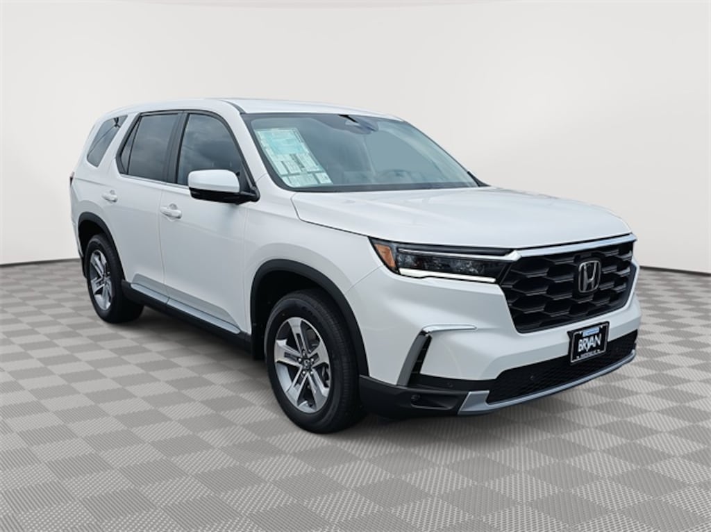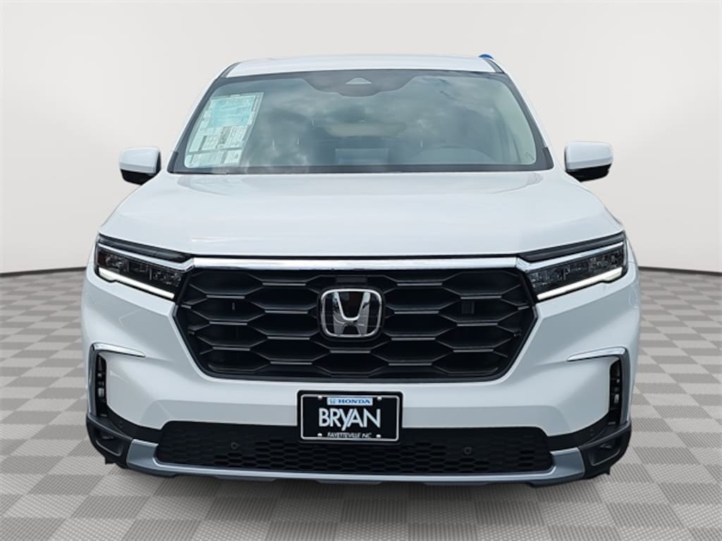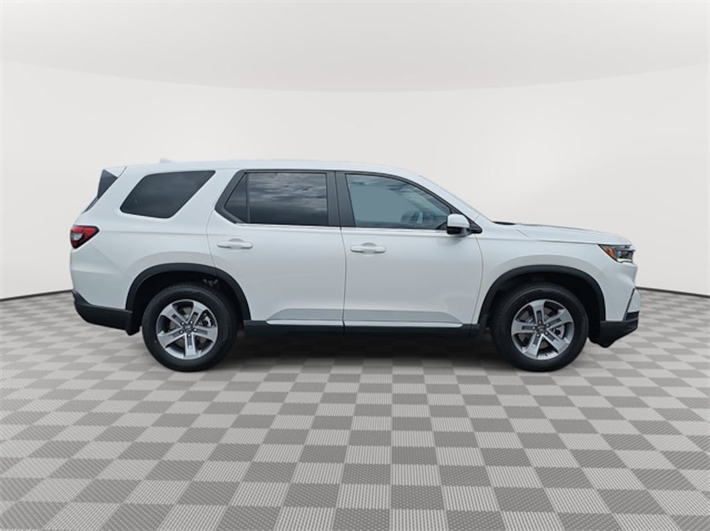 This 2025 Honda Pilot EX-L in Platinum White Pearl features: AWD, AWD, 3rd row seats: split-bench, 4-Wheel Disc Brakes, 4.167 Axle Ratio, 9 Speakers, ABS brakes, Adaptive Cruise Control: Adaptive Cruise Control (ACC) with Low-Speed Follow, Air Conditioning, Alloy wheels, AM/FM radio: SiriusXM, Apple CarPlay/Android Auto, Auto High-beam Headlights, Auto-dimming Rear-View mirror, Automatic temperature control, Blind Spot Information (BSI) System warning, Brake assist, Bumpers: body-color, Delay-off headlights, Driver door bin, Driver vanity mirror, Dual front impact airbags, Dual front side impact airbags, Electronic Stability Control, Emergency communication system: HondaLink Assist, Exterior Parking Camera Rear, Four wheel independent suspension, Front anti-roll bar, Front Bucket Seats, Front Center Armrest, Front dual zone A/C, Front fog lights, Front reading lights, Fully automatic headlights, Garage door transmitter: HomeLink, Heated door mirrors, Heated Front Bucket Seats, Heated front seats, Illuminated entry, Knee airbag, Lane departure: Lane Keeping Assist System (LKAS) active, Leather Seat Trim, Low tire pressure warning, Memory seat, Occupant sensing airbag, Outside temperature display, Overhead airbag, Overhead console, Panic alarm, Passenger door bin, Passenger vanity mirror, Power door mirrors, Power driver seat, Power Liftgate, Power passenger seat, Power steering, Power windows, Radio data system, Radio: 245-Watt Audio System, Rear air conditioning, Rear anti-roll bar, Rear reading lights, Rear seat center armrest, Rear window defroster, Rear window wiper, Reclining 3rd row seat, Remote keyless entry, Security system, SiriusXM, Speed control, Speed-sensing steering, Speed-Sensitive Wipers, Split folding rear seat, Spoiler, Steering wheel mounted audio controls, Tachometer, Telescoping steering wheel, Tilt steering wheel, Traction control, Trip computer, Turn signal indicator mirrors, Variably intermittent wipers, Wheels: 18" Pewter Gray Machined Face.