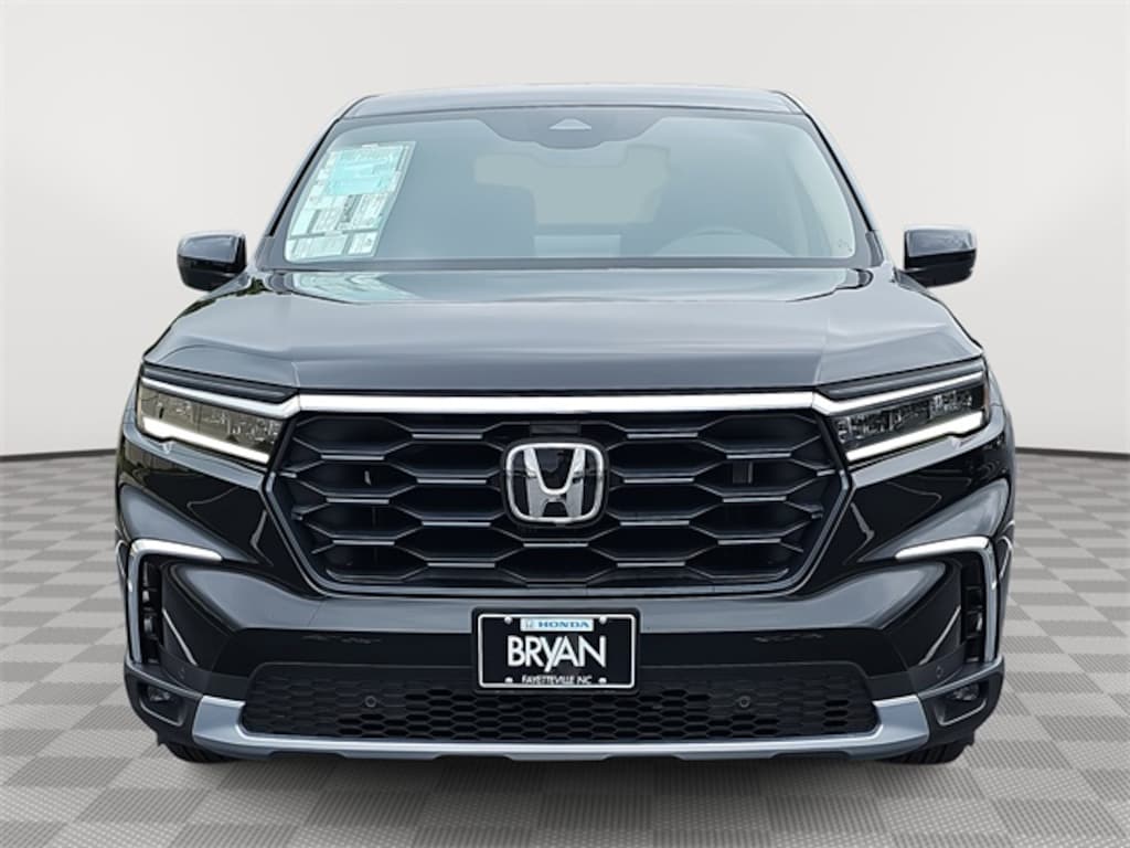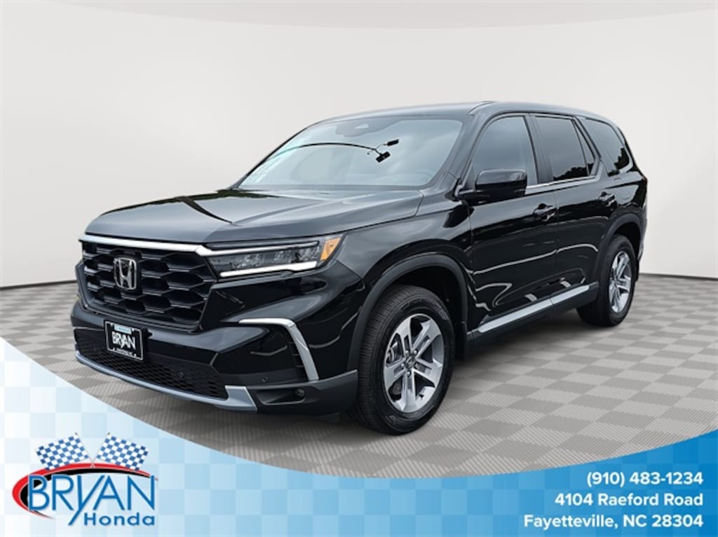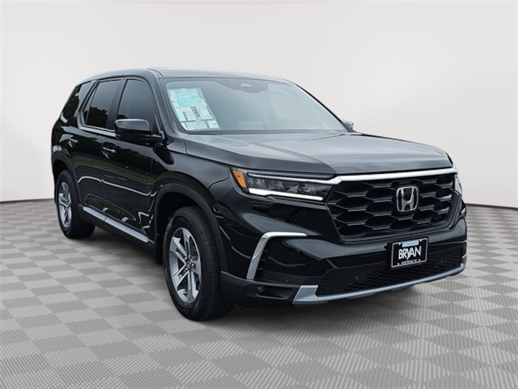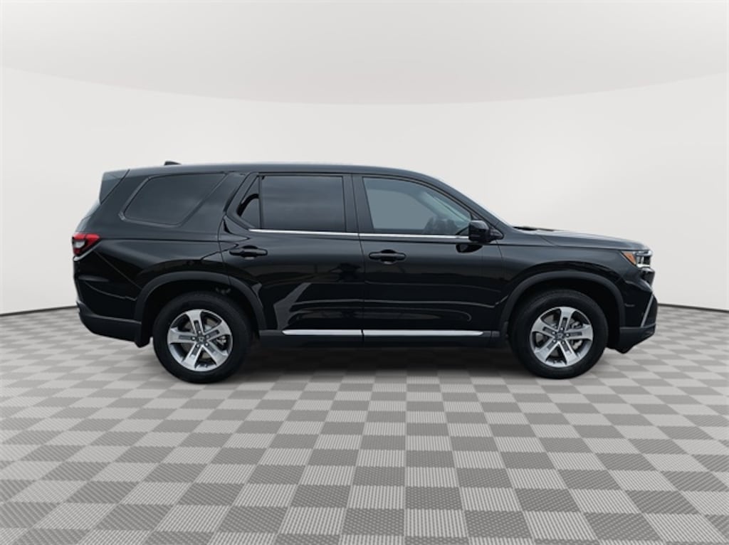 This 2025 Honda Pilot EX-L in Crystal Black Pearl features: 3rd row seats: split-bench, 4-Wheel Disc Brakes, 4.167 Axle Ratio, 9 Speakers, ABS brakes, Adaptive Cruise Control: Adaptive Cruise Control (ACC) with Low-Speed Follow, Air Conditioning, Alloy wheels, AM/FM radio: SiriusXM, Apple CarPlay/Android Auto, Auto High-beam Headlights, Auto-dimming Rear-View mirror, Automatic temperature control, Blind Spot Information (BSI) System warning, Brake assist, Bumpers: body-color, Delay-off headlights, Driver door bin, Driver vanity mirror, Dual front impact airbags, Dual front side impact airbags, Electronic Stability Control, Emergency communication system: HondaLink Assist, Exterior Parking Camera Rear, Four wheel independent suspension, Front anti-roll bar, Front Bucket Seats, Front Center Armrest, Front dual zone A/C, Front fog lights, Front reading lights, Fully automatic headlights, Garage door transmitter: HomeLink, Heated door mirrors, Heated Front Bucket Seats, Heated front seats, Illuminated entry, Knee airbag, Lane departure: Lane Keeping Assist System (LKAS) active, Leather Seat Trim, Low tire pressure warning, Memory seat, Occupant sensing airbag, Outside temperature display, Overhead airbag, Overhead console, Panic alarm, Passenger door bin, Passenger vanity mirror, Power door mirrors, Power driver seat, Power Liftgate, Power passenger seat, Power steering, Power windows, Radio data system, Radio: 245-Watt Audio System, Rear air conditioning, Rear anti-roll bar, Rear reading lights, Rear seat center armrest, Rear window defroster, Rear window wiper, Reclining 3rd row seat, Remote keyless entry, Security system, SiriusXM, Speed control, Speed-sensing steering, Speed-Sensitive Wipers, Split folding rear seat, Spoiler, Steering wheel mounted audio controls, Tachometer, Telescoping steering wheel, Tilt steering wheel, Traction control, Trip computer, Turn signal indicator mirrors, Variably intermittent wipers, Wheels: 18" Pewter Gray Machined Face.