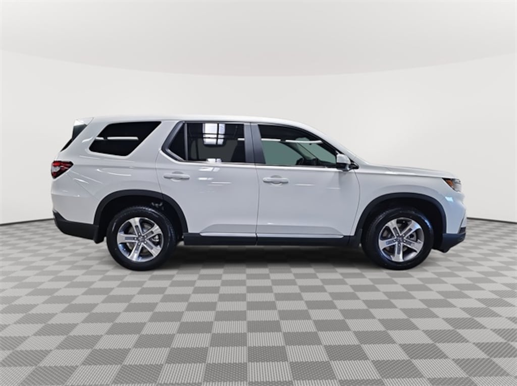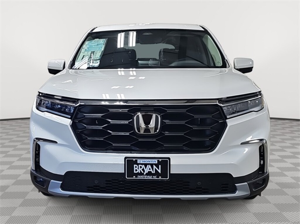 This 2025 Honda Pilot EX-L in Platinum White Pearl features: AWD, AWD, 3rd row seats: split-bench, 4-Wheel Disc Brakes, 4.167 Axle Ratio, 9 Speakers, ABS brakes, Adaptive Cruise Control: Adaptive Cruise Control (ACC) with Low-Speed Follow, Air Conditioning, Alloy wheels, AM/FM radio: SiriusXM, Apple CarPlay/Android Auto, Auto High-beam Headlights, Auto-dimming Rear-View mirror, Automatic temperature control, Blind Spot Information (BSI) System warning, Brake assist, Bumpers: body-color, Delay-off headlights, Driver door bin, Driver vanity mirror, Dual front impact airbags, Dual front side impact airbags, Electronic Stability Control, Emergency communication system: HondaLink Assist, Exterior Parking Camera Rear, Four wheel independent suspension, Front anti-roll bar, Front Bucket Seats, Front Center Armrest, Front dual zone A/C, Front fog lights, Front reading lights, Fully automatic headlights, Garage door transmitter: HomeLink, Heated door mirrors, Heated Front Bucket Seats, Heated front seats, Illuminated entry, Knee airbag, Lane departure: Lane Keeping Assist System (LKAS) active, Leather Seat Trim, Low tire pressure warning, Memory seat, Occupant sensing airbag, Outside temperature display, Overhead airbag, Overhead console, Panic alarm, Passenger door bin, Passenger vanity mirror, Power door mirrors, Power driver seat, Power Liftgate, Power passenger seat, Power steering, Power windows, Radio data system, Radio: 245-Watt Audio System, Rear air conditioning, Rear anti-roll bar, Rear reading lights, Rear seat center armrest, Rear window defroster, Rear window wiper, Reclining 3rd row seat, Remote keyless entry, Security system, SiriusXM, Speed control, Speed-sensing steering, Speed-Sensitive Wipers, Split folding rear seat, Spoiler, Steering wheel mounted audio controls, Tachometer, Telescoping steering wheel, Tilt steering wheel, Traction control, Trip computer, Turn signal indicator mirrors, Variably intermittent wipers, Wheels: 18" Pewter Gray Machined Face.