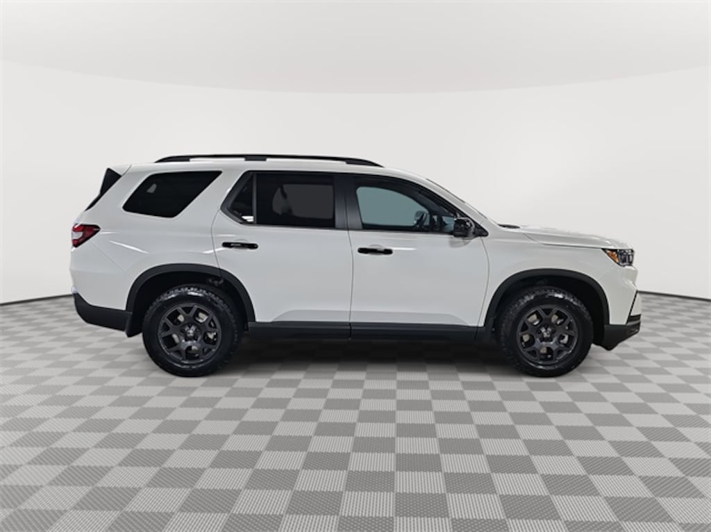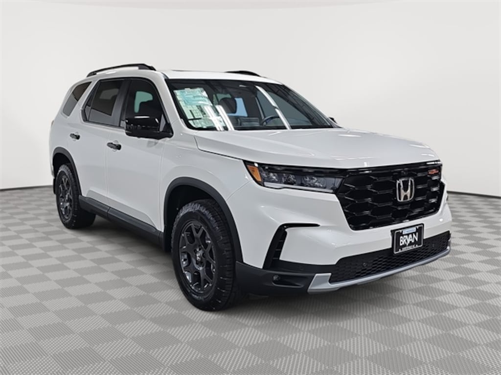 This 2025 Honda Pilot EX-L in Modern Steel Metallic features: AWD, AWD, 3rd row seats: split-bench, 4-Wheel Disc Brakes, 4.167 Axle Ratio, 9 Speakers, ABS brakes, Adaptive Cruise Control: Adaptive Cruise Control (ACC) with Low-Speed Follow, Air Conditioning, Alloy wheels, AM/FM radio: SiriusXM, Apple CarPlay/Android Auto, Auto High-beam Headlights, Auto-dimming Rear-View mirror, Automatic temperature control, Blind Spot Information (BSI) System warning, Brake assist, Bumpers: body-color, Delay-off headlights, Driver door bin, Driver vanity mirror, Dual front impact airbags, Dual front side impact airbags, Electronic Stability Control, Emergency communication system: HondaLink Assist, Exterior Parking Camera Rear, Four wheel independent suspension, Front anti-roll bar, Front Bucket Seats, Front Center Armrest, Front dual zone A/C, Front fog lights, Front reading lights, Fully automatic headlights, Garage door transmitter: HomeLink, Heated door mirrors, Heated Front Bucket Seats, Heated front seats, Illuminated entry, Knee airbag, Lane departure: Lane Keeping Assist System (LKAS) active, Leather Seat Trim, Low tire pressure warning, Memory seat, Occupant sensing airbag, Outside temperature display, Overhead airbag, Overhead console, Panic alarm, Passenger door bin, Passenger vanity mirror, Power door mirrors, Power driver seat, Power Liftgate, Power passenger seat, Power steering, Power windows, Radio data system, Radio: 245-Watt Audio System, Rear air conditioning, Rear anti-roll bar, Rear reading lights, Rear seat center armrest, Rear window defroster, Rear window wiper, Reclining 3rd row seat, Remote keyless entry, Security system, SiriusXM, Speed control, Speed-sensing steering, Speed-Sensitive Wipers, Split folding rear seat, Spoiler, Steering wheel mounted audio controls, Tachometer, Telescoping steering wheel, Tilt steering wheel, Traction control, Trip computer, Turn signal indicator mirrors, Variably intermittent wipers, Wheels: 18" Pewter Gray Machined Face.