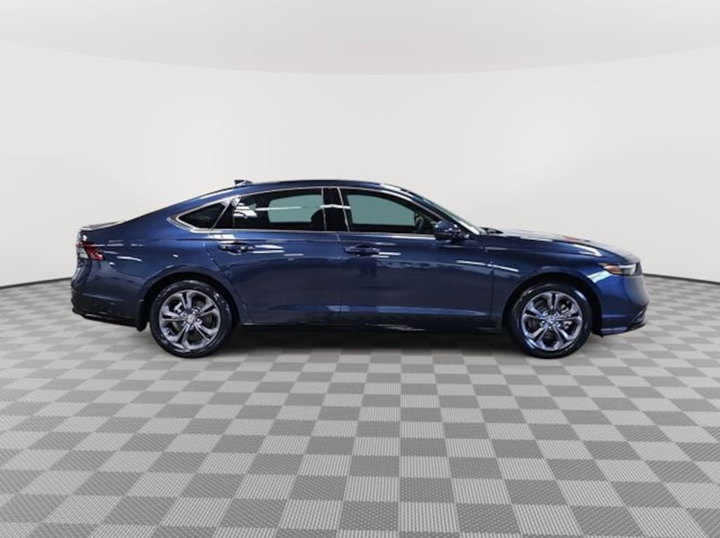 This 2026 Honda Accord Hybrid EX-L in Canyon River Blue Metallic features: 2.0L I4 DOHC 16V, 2.0L I4 DOHC 16V, 4-Wheel Disc Brakes, 8 Speakers, ABS brakes, Adaptive Cruise Control: Adaptive Cruise Control (ACC) with Low-Speed Follow, Air Conditioning, Alloy wheels, AM/FM radio, Apple CarPlay/Android Auto, Auto High-beam Headlights, Auto-dimming Rear-View mirror, Automatic temperature control, Blind Spot Information (BSI) System warning, Brake assist, Bumpers: body-color, Compass, Delay-off headlights, Driver door bin, Driver vanity mirror, Dual front impact airbags, Dual front side impact airbags, Electronic Stability Control, Emergency communication system: HondaLink, Exterior Parking Camera Rear, Four wheel independent suspension, Front anti-roll bar, Front Bucket Seats, Front Center Armrest, Front dual zone A/C, Front reading lights, Fully automatic headlights, Heated door mirrors, Heated Front Bucket Seats, Heated front seats, Illuminated entry, Knee airbag, Lane departure: Lane Keeping Assist System (LKAS) active, Leather Shift Knob, Leather steering wheel, Leather-Trimmed Seat Trim, Low tire pressure warning, Memory seat, Occupant sensing airbag, Outside temperature display, Overhead airbag, Overhead console, Panic alarm, Passenger door bin, Passenger vanity mirror, Power door mirrors, Power driver seat, Power moonroof, Power passenger seat, Power steering, Power windows, Radio data system, Radio: 180-Watt Audio System, Rear anti-roll bar, Rear reading lights, Rear seat center armrest, Rear side impact airbag, Rear window defroster, Remote keyless entry, Security system, Speed control, Speed-sensing steering, Speed-Sensitive Wipers, Split folding rear seat, Steering wheel mounted audio controls, Telescoping steering wheel, Tilt steering wheel, Traction control, Trip computer, Turn signal indicator mirrors, Variably intermittent wipers, Wheels: 17" x 7.5J Pewter Gray.