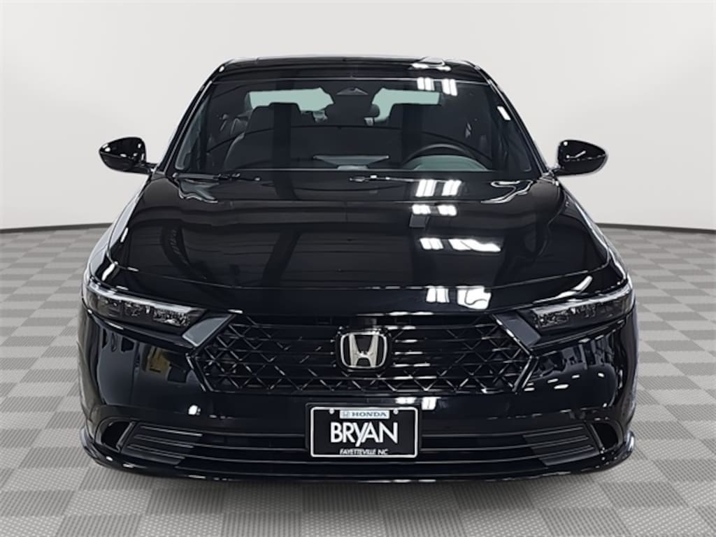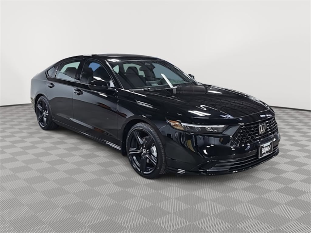 This 2026 Honda Accord Hybrid Sport-L in Crystal Black Pearl features: 2.0L I4 DOHC 16V, 2.0L I4 DOHC 16V, 4-Wheel Disc Brakes, 8 Speakers, ABS brakes, Adaptive Cruise Control: Adaptive Cruise Control (ACC) with Low-Speed Follow, Air Conditioning, Alloy wheels, AM/FM radio, Apple CarPlay/Android Auto, Auto High-beam Headlights, Automatic temperature control, Blind Spot Information (BSI) System warning, Brake assist, Bumpers: body-color, Compass, Delay-off headlights, Driver door bin, Driver vanity mirror, Dual front impact airbags, Dual front side impact airbags, Electronic Stability Control, Emergency communication system: HondaLink, Exterior Parking Camera Rear, Four wheel independent suspension, Front anti-roll bar, Front Bucket Seats, Front Center Armrest, Front dual zone A/C, Front reading lights, Fully automatic headlights, Heated Front Bucket Seats, Heated front seats, Illuminated entry, Knee airbag, Lane departure: Lane Keeping Assist System (LKAS) active, Leather Shift Knob, Leather steering wheel, Leather-Trimmed Seat Trim, Low tire pressure warning, Memory seat, Occupant sensing airbag, Outside temperature display, Overhead airbag, Overhead console, Panic alarm, Passenger door bin, Passenger vanity mirror, Power door mirrors, Power driver seat, Power moonroof, Power passenger seat, Power steering, Power windows, Radio data system, Radio: 180-Watt Audio System, Rear anti-roll bar, Rear reading lights, Rear seat center armrest, Rear side impact airbag, Rear window defroster, Remote keyless entry, Security system, Speed control, Speed-sensing steering, Speed-Sensitive Wipers, Split folding rear seat, Spoiler, Steering wheel mounted audio controls, Telescoping steering wheel, Tilt steering wheel, Traction control, Trip computer, Variably intermittent wipers, Wheels: 19" x 8.5J Matte Berlina Black.