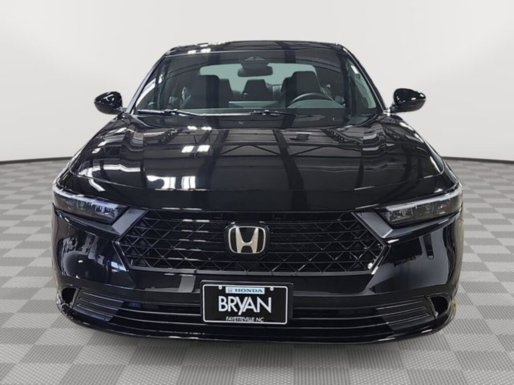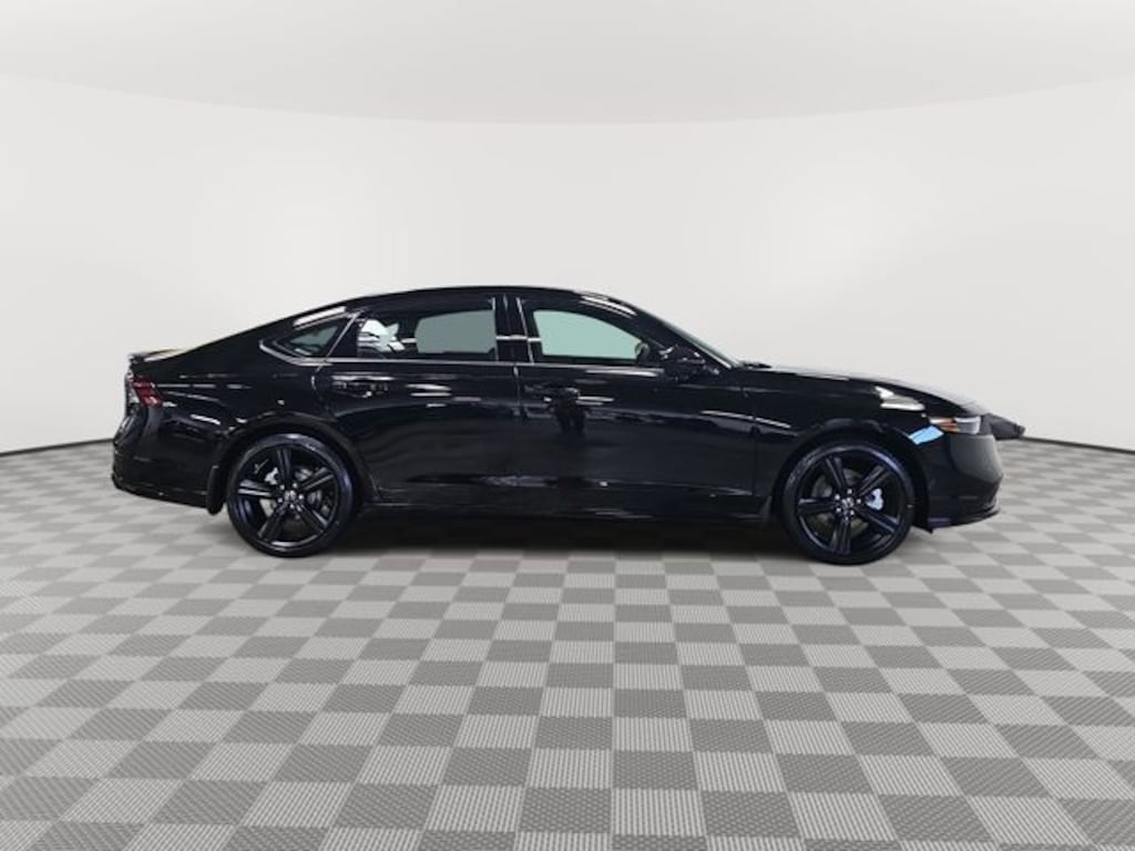 This 2026 Honda Accord Hybrid Sport-L in Crystal Black Pearl features: 2.0L I4 DOHC 16V, 2.0L I4 DOHC 16V, 4-Wheel Disc Brakes, 8 Speakers, ABS brakes, Adaptive Cruise Control: Adaptive Cruise Control (ACC) with Low-Speed Follow, Air Conditioning, Alloy wheels, AM/FM radio, Apple CarPlay/Android Auto, Auto High-beam Headlights, Automatic temperature control, Blind Spot Information (BSI) System warning, Brake assist, Bumpers: body-color, Compass, Delay-off headlights, Driver door bin, Driver vanity mirror, Dual front impact airbags, Dual front side impact airbags, Electronic Stability Control, Emergency communication system: HondaLink, Exterior Parking Camera Rear, Four wheel independent suspension, Front anti-roll bar, Front Bucket Seats, Front Center Armrest, Front dual zone A/C, Front reading lights, Fully automatic headlights, Heated Front Bucket Seats, Heated front seats, Illuminated entry, Knee airbag, Lane departure: Lane Keeping Assist System (LKAS) active, Leather Shift Knob, Leather steering wheel, Leather-Trimmed Seat Trim, Low tire pressure warning, Memory seat, Occupant sensing airbag, Outside temperature display, Overhead airbag, Overhead console, Panic alarm, Passenger door bin, Passenger vanity mirror, Power door mirrors, Power driver seat, Power moonroof, Power passenger seat, Power steering, Power windows, Radio data system, Radio: 180-Watt Audio System, Rear anti-roll bar, Rear reading lights, Rear seat center armrest, Rear side impact airbag, Rear window defroster, Remote keyless entry, Security system, Speed control, Speed-sensing steering, Speed-Sensitive Wipers, Split folding rear seat, Spoiler, Steering wheel mounted audio controls, Telescoping steering wheel, Tilt steering wheel, Traction control, Trip computer, Variably intermittent wipers, Wheels: 19" x 8.5J Matte Berlina Black.