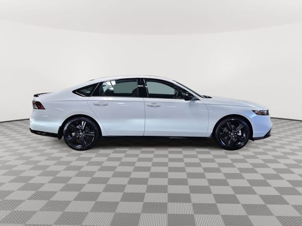 This 2026 Honda Accord Hybrid Sport-L in Platinum White Pearl features: 2.0L I4 DOHC 16V, 2.0L I4 DOHC 16V, 4-Wheel Disc Brakes, 8 Speakers, ABS brakes, Adaptive Cruise Control: Adaptive Cruise Control (ACC) with Low-Speed Follow, Air Conditioning, Alloy wheels, AM/FM radio, Apple CarPlay/Android Auto, Auto High-beam Headlights, Automatic temperature control, Blind Spot Information (BSI) System warning, Brake assist, Bumpers: body-color, Compass, Delay-off headlights, Driver door bin, Driver vanity mirror, Dual front impact airbags, Dual front side impact airbags, Electronic Stability Control, Emergency communication system: HondaLink, Exterior Parking Camera Rear, Four wheel independent suspension, Front anti-roll bar, Front Bucket Seats, Front Center Armrest, Front dual zone A/C, Front reading lights, Fully automatic headlights, Heated Front Bucket Seats, Heated front seats, Illuminated entry, Knee airbag, Lane departure: Lane Keeping Assist System (LKAS) active, Leather Shift Knob, Leather steering wheel, Leather-Trimmed Seat Trim, Low tire pressure warning, Memory seat, Occupant sensing airbag, Outside temperature display, Overhead airbag, Overhead console, Panic alarm, Passenger door bin, Passenger vanity mirror, Power door mirrors, Power driver seat, Power moonroof, Power passenger seat, Power steering, Power windows, Radio data system, Radio: 180-Watt Audio System, Rear anti-roll bar, Rear reading lights, Rear seat center armrest, Rear side impact airbag, Rear window defroster, Remote keyless entry, Security system, Speed control, Speed-sensing steering, Speed-Sensitive Wipers, Split folding rear seat, Spoiler, Steering wheel mounted audio controls, Telescoping steering wheel, Tilt steering wheel, Traction control, Trip computer, Variably intermittent wipers, Wheels: 19" x 8.5J Matte Berlina Black.