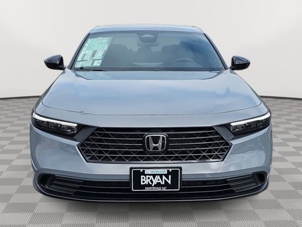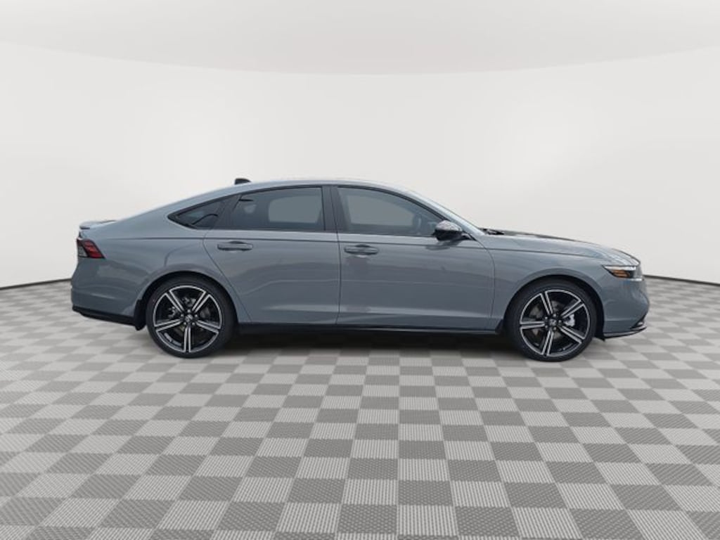 This 2026 Honda Accord Hybrid Sport in Urban Gray Pearl features: 2.0L I4 DOHC 16V, 2.0L I4 DOHC 16V, 4-Wheel Disc Brakes, 8 Speakers, ABS brakes, Adaptive Cruise Control: Adaptive Cruise Control (ACC) with Low-Speed Follow, Air Conditioning, Alloy wheels, AM/FM radio, Apple CarPlay/Android Auto, Auto High-beam Headlights, Automatic temperature control, Blind Spot Information (BSI) System warning, Brake assist, Bumpers: body-color, Compass, Delay-off headlights, Driver door bin, Driver vanity mirror, Dual front impact airbags, Dual front side impact airbags, Electronic Stability Control, Emergency communication system: HondaLink, Exterior Parking Camera Rear, Fabric Seat Trim, Four wheel independent suspension, Front anti-roll bar, Front Bucket Seats, Front Center Armrest, Front dual zone A/C, Front reading lights, Fully automatic headlights, Heated Front Bucket Seats, Heated front seats, Illuminated entry, Knee airbag, Lane departure: Lane Keeping Assist System (LKAS) active, Leather Shift Knob, Leather steering wheel, Low tire pressure warning, Occupant sensing airbag, Outside temperature display, Overhead airbag, Overhead console, Panic alarm, Passenger door bin, Passenger vanity mirror, Power door mirrors, Power driver seat, Power moonroof, Power steering, Power windows, Radio data system, Radio: 180-Watt Audio System, Rear anti-roll bar, Rear reading lights, Rear seat center armrest, Rear side impact airbag, Rear window defroster, Remote keyless entry, Security system, Speed control, Speed-sensing steering, Speed-Sensitive Wipers, Split folding rear seat, Spoiler, Steering wheel mounted audio controls, Telescoping steering wheel, Tilt steering wheel, Traction control, Trip computer, Variably intermittent wipers, Wheels: 19" x 8.5J Berlina Black.