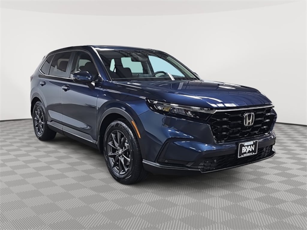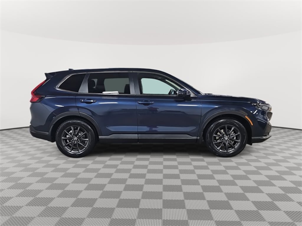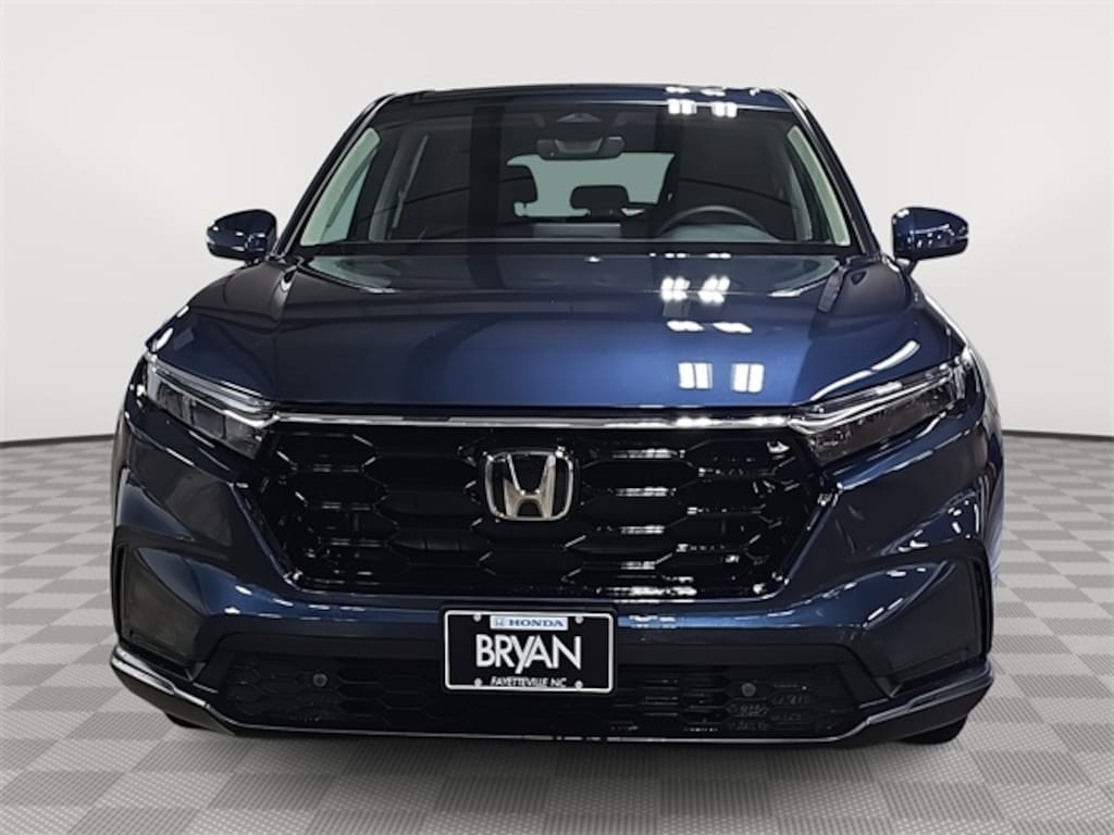 This 2026 Honda CR-V EX-L in Canyon River Blue Metallic features: 4-Wheel Disc Brakes, 8 Speakers, ABS brakes, Adaptive Cruise Control: Adaptive Cruise Control (ACC) with Low-Speed Follow, Air Conditioning, Alloy wheels, Apple CarPlay/Android Auto, Auto High-beam Headlights, Auto-dimming Rear-View mirror, Automatic temperature control, Blind Spot Information (BSI) System warning, Brake assist, Bumpers: body-color, Compass, Delay-off headlights, Driver door bin, Driver vanity mirror, Dual front impact airbags, Dual front side impact airbags, Electronic Stability Control, Exterior Parking Camera Rear, Four wheel independent suspension, Front anti-roll bar, Front Bucket Seats, Front Center Armrest, Front dual zone A/C, Front reading lights, Fully automatic headlights, Heated door mirrors, Heated Front Bucket Seats, Heated front seats, Illuminated entry, Knee airbag, Leather Seat Trim, Leather Shift Knob, Leather steering wheel, Low tire pressure warning, Memory seat, Occupant sensing airbag, Outside temperature display, Overhead airbag, Overhead console, Panic alarm, Passenger door bin, Passenger vanity mirror, Power door mirrors, Power driver seat, Power Liftgate, Power moonroof, Power passenger seat, Power steering, Power windows, Radio data system, Radio: 320-Watt AM/FM Audio System, Rear anti-roll bar, Rear reading lights, Rear seat center armrest, Rear side impact airbag, Rear window defroster, Rear window wiper, Remote keyless entry, Security system, Speed control, Speed-sensing steering, Speed-Sensitive Wipers, Split folding rear seat, Spoiler, Steering wheel mounted audio controls, Tachometer, Telescoping steering wheel, Tilt steering wheel, Traction control, Trip computer, Turn signal indicator mirrors, Variably intermittent wipers, Wheels: 18" Shark Gray.