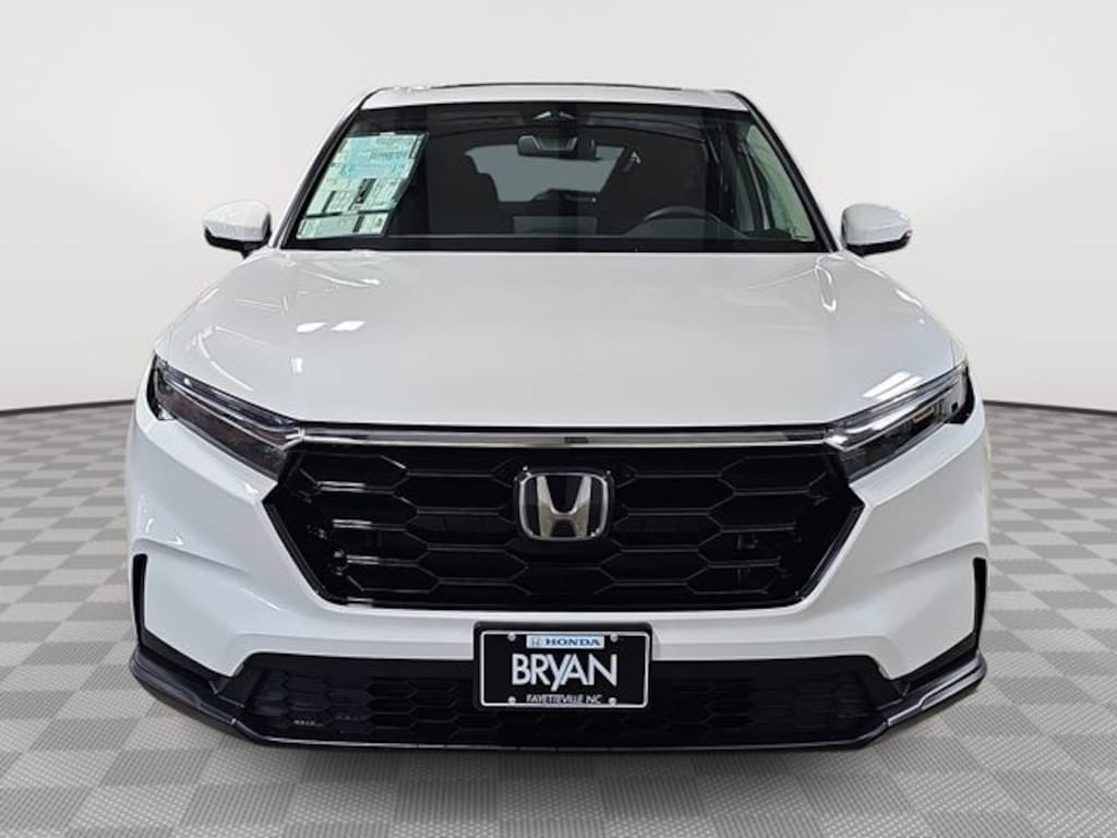 This 2026 Honda CR-V EX in Platinum White Pearl features: 4-Wheel Disc Brakes, 6 Speakers, ABS brakes, Adaptive Cruise Control: Adaptive Cruise Control (ACC) with Low-Speed Follow, Air Conditioning, Alloy wheels, AM/FM radio, Apple CarPlay/Android Auto, Auto High-beam Headlights, Automatic temperature control, Blind Spot Information (BSI) System warning, Brake assist, Bumpers: body-color, Cloth Seat Trim, Compass, Delay-off headlights, Driver door bin, Driver vanity mirror, Dual front impact airbags, Dual front side impact airbags, Electronic Stability Control, Exterior Parking Camera Rear, Four wheel independent suspension, Front anti-roll bar, Front Bucket Seats, Front Center Armrest, Front dual zone A/C, Front reading lights, Fully automatic headlights, Heated door mirrors, Heated Front Bucket Seats, Heated front seats, Illuminated entry, Knee airbag, Low tire pressure warning, Occupant sensing airbag, Outside temperature display, Overhead airbag, Overhead console, Panic alarm, Passenger door bin, Passenger vanity mirror, Power door mirrors, Power driver seat, Power moonroof, Power steering, Power windows, Radio data system, Radio: 240-Watt AM/FM Audio System, Rear anti-roll bar, Rear reading lights, Rear seat center armrest, Rear side impact airbag, Rear window defroster, Rear window wiper, Remote keyless entry, Security system, Speed control, Speed-sensing steering, Speed-Sensitive Wipers, Split folding rear seat, Spoiler, Steering wheel mounted audio controls, Tachometer, Telescoping steering wheel, Tilt steering wheel, Traction control, Trip computer, Turn signal indicator mirrors, Variably intermittent wipers, Wheels: 18" Sparkle Silver.
