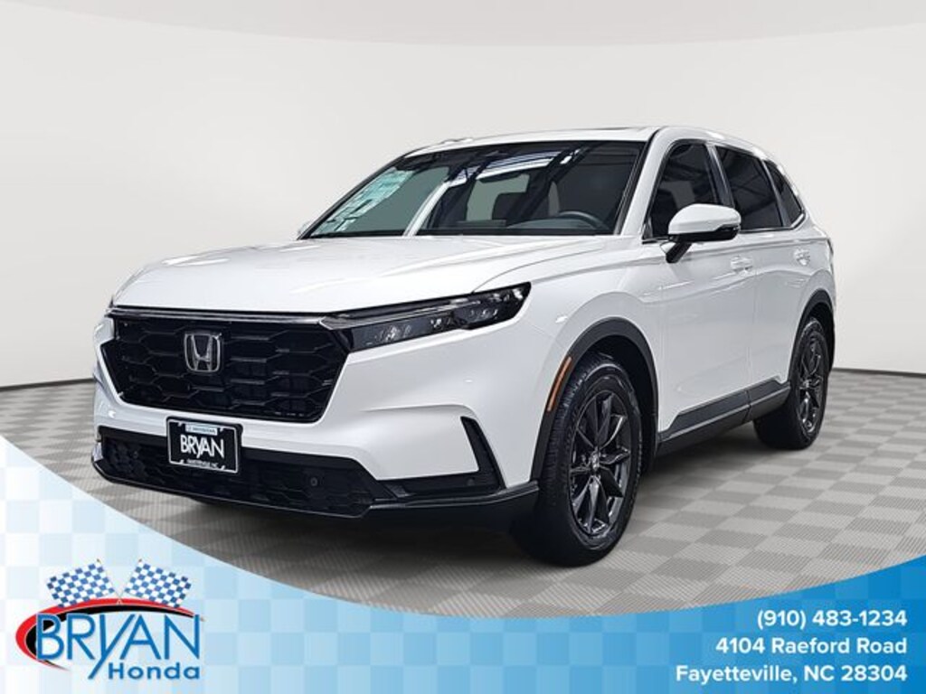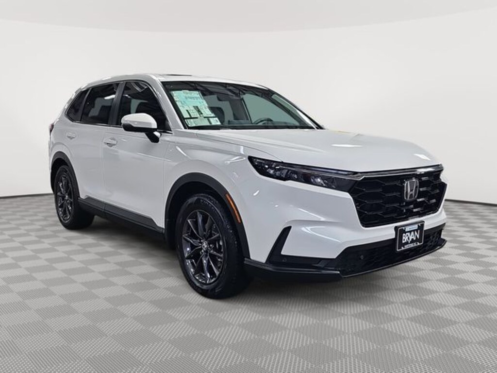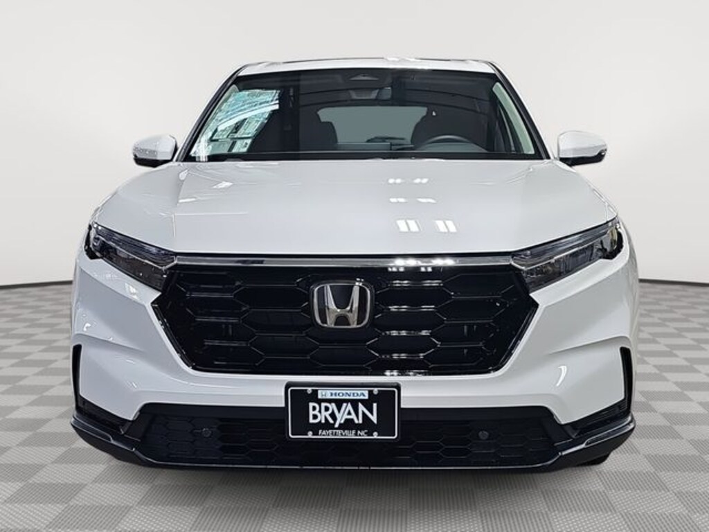This 2026 Honda CR-V EX-L in Platinum White Pearl features: 4-Wheel Disc Brakes, 8 Speakers, ABS brakes, Adaptive Cruise Control: Adaptive Cruise Control (ACC) with Low-Speed Follow, Air Conditioning, Alloy wheels, AM/FM radio, Apple CarPlay/Android Auto, Auto High-beam Headlights, Auto-dimming Rear-View mirror, Automatic temperature control, Blind Spot Information (BSI) System warning, Brake assist, Bumpers: body-color, Compass, Delay-off headlights, Driver door bin, Driver vanity mirror, Dual front impact airbags, Dual front side impact airbags, Electronic Stability Control, Exterior Parking Camera Rear, Four wheel independent suspension, Front anti-roll bar, Front Bucket Seats, Front Center Armrest, Front dual zone A/C, Front reading lights, Fully automatic headlights, Heated door mirrors, Heated Front Bucket Seats, Heated front seats, Illuminated entry, Knee airbag, Leather Seat Trim, Leather Shift Knob, Leather steering wheel, Low tire pressure warning, Memory seat, Occupant sensing airbag, Outside temperature display, Overhead airbag, Overhead console, Panic alarm, Passenger door bin, Passenger vanity mirror, Power door mirrors, Power driver seat, Power Liftgate, Power moonroof, Power passenger seat, Power steering, Power windows, Radio data system, Radio: 320-Watt AM/FM Audio System, Rear anti-roll bar, Rear reading lights, Rear seat center armrest, Rear side impact airbag, Rear window defroster, Rear window wiper, Remote keyless entry, Security system, Speed control, Speed-sensing steering, Speed-Sensitive Wipers, Split folding rear seat, Spoiler, Steering wheel mounted audio controls, Tachometer, Telescoping steering wheel, Tilt steering wheel, Traction control, Trip computer, Turn signal indicator mirrors, Variably intermittent wipers, Wheels: 18" Shark Grey.