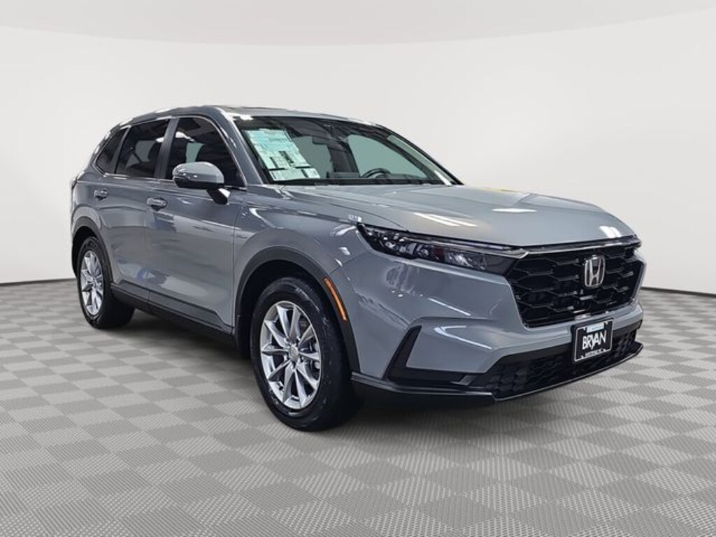 This 2026 Honda CR-V EX in Urban Gray Pearl features: 4-Wheel Disc Brakes, 6 Speakers, ABS brakes, Adaptive Cruise Control: Adaptive Cruise Control (ACC) with Low-Speed Follow, Air Conditioning, Alloy wheels, AM/FM radio, Apple CarPlay/Android Auto, Auto High-beam Headlights, Automatic temperature control, Blind Spot Information (BSI) System warning, Brake assist, Bumpers: body-color, Cloth Seat Trim, Compass, Delay-off headlights, Driver door bin, Driver vanity mirror, Dual front impact airbags, Dual front side impact airbags, Electronic Stability Control, Exterior Parking Camera Rear, Four wheel independent suspension, Front anti-roll bar, Front Bucket Seats, Front Center Armrest, Front dual zone A/C, Front reading lights, Fully automatic headlights, Heated door mirrors, Heated Front Bucket Seats, Heated front seats, Illuminated entry, Knee airbag, Low tire pressure warning, Occupant sensing airbag, Outside temperature display, Overhead airbag, Overhead console, Panic alarm, Passenger door bin, Passenger vanity mirror, Power door mirrors, Power driver seat, Power moonroof, Power steering, Power windows, Radio data system, Radio: 240-Watt AM/FM Audio System, Rear anti-roll bar, Rear reading lights, Rear seat center armrest, Rear side impact airbag, Rear window defroster, Rear window wiper, Remote keyless entry, Security system, Speed control, Speed-sensing steering, Speed-Sensitive Wipers, Split folding rear seat, Spoiler, Steering wheel mounted audio controls, Tachometer, Telescoping steering wheel, Tilt steering wheel, Traction control, Trip computer, Turn signal indicator mirrors, Variably intermittent wipers, Wheels: 18" Sparkle Silver.