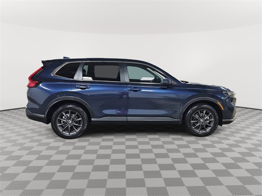 This 2026 Honda CR-V EX-L in Canyon River Blue Metallic features: AWD, AWD, 4-Wheel Disc Brakes, 8 Speakers, ABS brakes, Adaptive Cruise Control: Adaptive Cruise Control (ACC) with Low-Speed Follow, Air Conditioning, Alloy wheels, Apple CarPlay/Android Auto, Auto High-beam Headlights, Auto-dimming Rear-View mirror, Automatic temperature control, Blind Spot Information (BSI) System warning, Brake assist, Bumpers: body-color, Compass, Delay-off headlights, Driver door bin, Driver vanity mirror, Dual front impact airbags, Dual front side impact airbags, Electronic Stability Control, Exterior Parking Camera Rear, Four wheel independent suspension, Front anti-roll bar, Front Bucket Seats, Front Center Armrest, Front dual zone A/C, Front reading lights, Fully automatic headlights, Heated door mirrors, Heated Front Bucket Seats, Heated front seats, Illuminated entry, Knee airbag, Leather Seat Trim, Leather Shift Knob, Leather steering wheel, Low tire pressure warning, Memory seat, Occupant sensing airbag, Outside temperature display, Overhead airbag, Overhead console, Panic alarm, Passenger door bin, Passenger vanity mirror, Power door mirrors, Power driver seat, Power Liftgate, Power moonroof, Power passenger seat, Power steering, Power windows, Radio data system, Radio: 320-Watt AM/FM Audio System, Rear anti-roll bar, Rear reading lights, Rear seat center armrest, Rear side impact airbag, Rear window defroster, Rear window wiper, Remote keyless entry, Security system, Speed control, Speed-sensing steering, Speed-Sensitive Wipers, Split folding rear seat, Spoiler, Steering wheel mounted audio controls, Tachometer, Telescoping steering wheel, Tilt steering wheel, Traction control, Trip computer, Turn signal indicator mirrors, Variably intermittent wipers, Wheels: 18" Shark Gray.