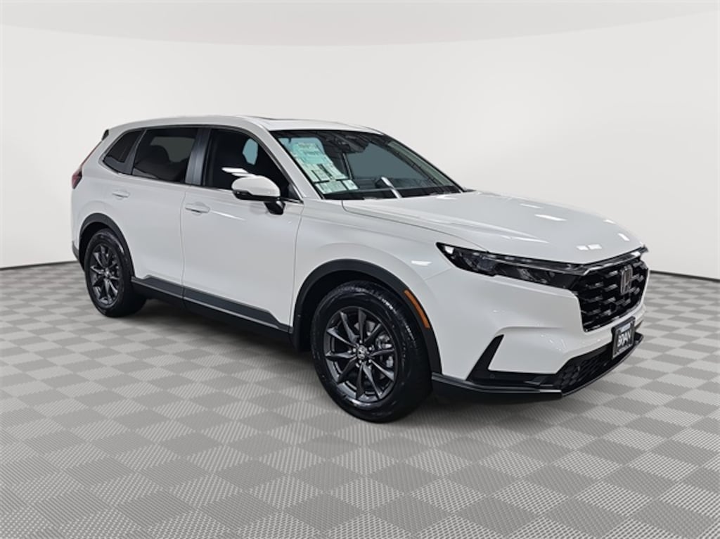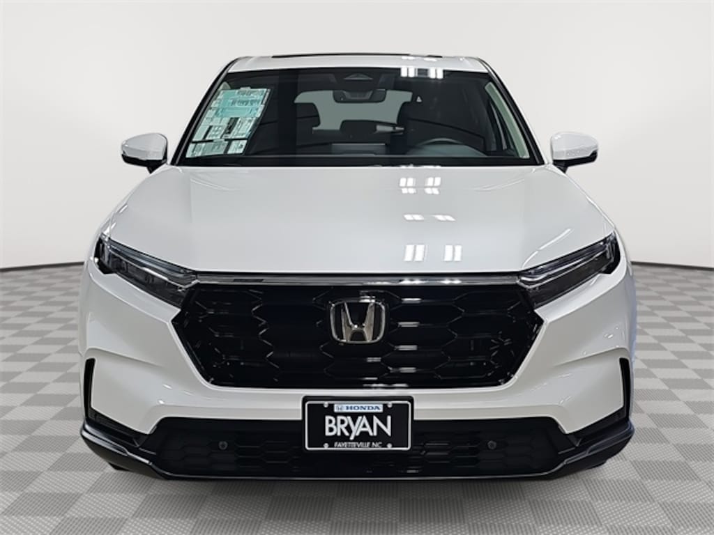 This 2026 Honda CR-V EX-L in Platinum White Pearl features: 4-Wheel Disc Brakes, 8 Speakers, ABS brakes, Adaptive Cruise Control: Adaptive Cruise Control (ACC) with Low-Speed Follow, Air Conditioning, Alloy wheels, AM/FM radio, Apple CarPlay/Android Auto, Auto High-beam Headlights, Auto-dimming Rear-View mirror, Automatic temperature control, Blind Spot Information (BSI) System warning, Brake assist, Bumpers: body-color, Compass, Delay-off headlights, Driver door bin, Driver vanity mirror, Dual front impact airbags, Dual front side impact airbags, Electronic Stability Control, Exterior Parking Camera Rear, Four wheel independent suspension, Front anti-roll bar, Front Bucket Seats, Front Center Armrest, Front dual zone A/C, Front reading lights, Fully automatic headlights, Heated door mirrors, Heated Front Bucket Seats, Heated front seats, Illuminated entry, Knee airbag, Leather Seat Trim, Leather Shift Knob, Leather steering wheel, Low tire pressure warning, Memory seat, Occupant sensing airbag, Outside temperature display, Overhead airbag, Overhead console, Panic alarm, Passenger door bin, Passenger vanity mirror, Power door mirrors, Power driver seat, Power Liftgate, Power moonroof, Power passenger seat, Power steering, Power windows, Radio data system, Radio: 320-Watt AM/FM Audio System, Rear anti-roll bar, Rear reading lights, Rear seat center armrest, Rear side impact airbag, Rear window defroster, Rear window wiper, Remote keyless entry, Security system, Speed control, Speed-sensing steering, Speed-Sensitive Wipers, Split folding rear seat, Spoiler, Steering wheel mounted audio controls, Tachometer, Telescoping steering wheel, Tilt steering wheel, Traction control, Trip computer, Turn signal indicator mirrors, Variably intermittent wipers, Wheels: 18" Shark Gray.