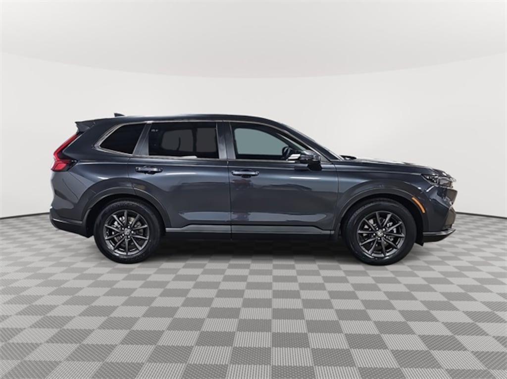 This 2026 Honda CR-V EX-L in Meteorite Gray Metallic features: 4-Wheel Disc Brakes, 8 Speakers, ABS brakes, Adaptive Cruise Control: Adaptive Cruise Control (ACC) with Low-Speed Follow, Air Conditioning, Alloy wheels, AM/FM radio, Apple CarPlay/Android Auto, Auto High-beam Headlights, Auto-dimming Rear-View mirror, Automatic temperature control, Blind Spot Information (BSI) System warning, Brake assist, Bumpers: body-color, Compass, Delay-off headlights, Driver door bin, Driver vanity mirror, Dual front impact airbags, Dual front side impact airbags, Electronic Stability Control, Exterior Parking Camera Rear, Four wheel independent suspension, Front anti-roll bar, Front Bucket Seats, Front Center Armrest, Front dual zone A/C, Front reading lights, Fully automatic headlights, Heated door mirrors, Heated Front Bucket Seats, Heated front seats, Illuminated entry, Knee airbag, Leather Seat Trim, Leather Shift Knob, Leather steering wheel, Low tire pressure warning, Memory seat, Occupant sensing airbag, Outside temperature display, Overhead airbag, Overhead console, Panic alarm, Passenger door bin, Passenger vanity mirror, Power door mirrors, Power driver seat, Power Liftgate, Power moonroof, Power passenger seat, Power steering, Power windows, Radio data system, Radio: 320-Watt AM/FM Audio System, Rear anti-roll bar, Rear reading lights, Rear seat center armrest, Rear side impact airbag, Rear window defroster, Rear window wiper, Remote keyless entry, Security system, Speed control, Speed-sensing steering, Speed-Sensitive Wipers, Split folding rear seat, Spoiler, Steering wheel mounted audio controls, Tachometer, Telescoping steering wheel, Tilt steering wheel, Traction control, Trip computer, Turn signal indicator mirrors, Variably intermittent wipers, Wheels: 18" Shark Gray.