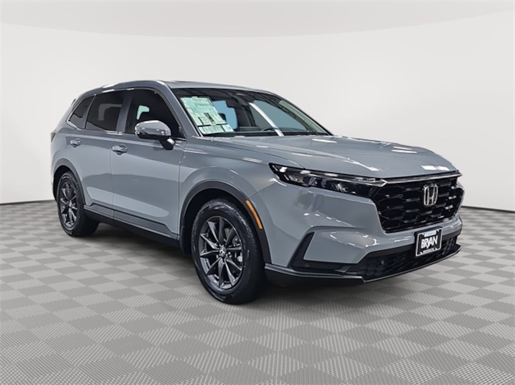 This 2026 Honda CR-V EX-L in Urban Gray Pearl features: 4-Wheel Disc Brakes, 8 Speakers, ABS brakes, Adaptive Cruise Control: Adaptive Cruise Control (ACC) with Low-Speed Follow, Air Conditioning, Alloy wheels, AM/FM radio, Apple CarPlay/Android Auto, Auto High-beam Headlights, Auto-dimming Rear-View mirror, Automatic temperature control, Blind Spot Information (BSI) System warning, Brake assist, Bumpers: body-color, Compass, Delay-off headlights, Driver door bin, Driver vanity mirror, Dual front impact airbags, Dual front side impact airbags, Electronic Stability Control, Exterior Parking Camera Rear, Four wheel independent suspension, Front anti-roll bar, Front Bucket Seats, Front Center Armrest, Front dual zone A/C, Front reading lights, Fully automatic headlights, Heated door mirrors, Heated Front Bucket Seats, Heated front seats, Illuminated entry, Knee airbag, Leather Seat Trim, Leather Shift Knob, Leather steering wheel, Low tire pressure warning, Memory seat, Occupant sensing airbag, Outside temperature display, Overhead airbag, Overhead console, Panic alarm, Passenger door bin, Passenger vanity mirror, Power door mirrors, Power driver seat, Power Liftgate, Power moonroof, Power passenger seat, Power steering, Power windows, Radio data system, Radio: 320-Watt AM/FM Audio System, Rear anti-roll bar, Rear reading lights, Rear seat center armrest, Rear side impact airbag, Rear window defroster, Rear window wiper, Remote keyless entry, Security system, Speed control, Speed-sensing steering, Speed-Sensitive Wipers, Split folding rear seat, Spoiler, Steering wheel mounted audio controls, Tachometer, Telescoping steering wheel, Tilt steering wheel, Traction control, Trip computer, Turn signal indicator mirrors, Variably intermittent wipers, Wheels: 18" Shark Gray.
