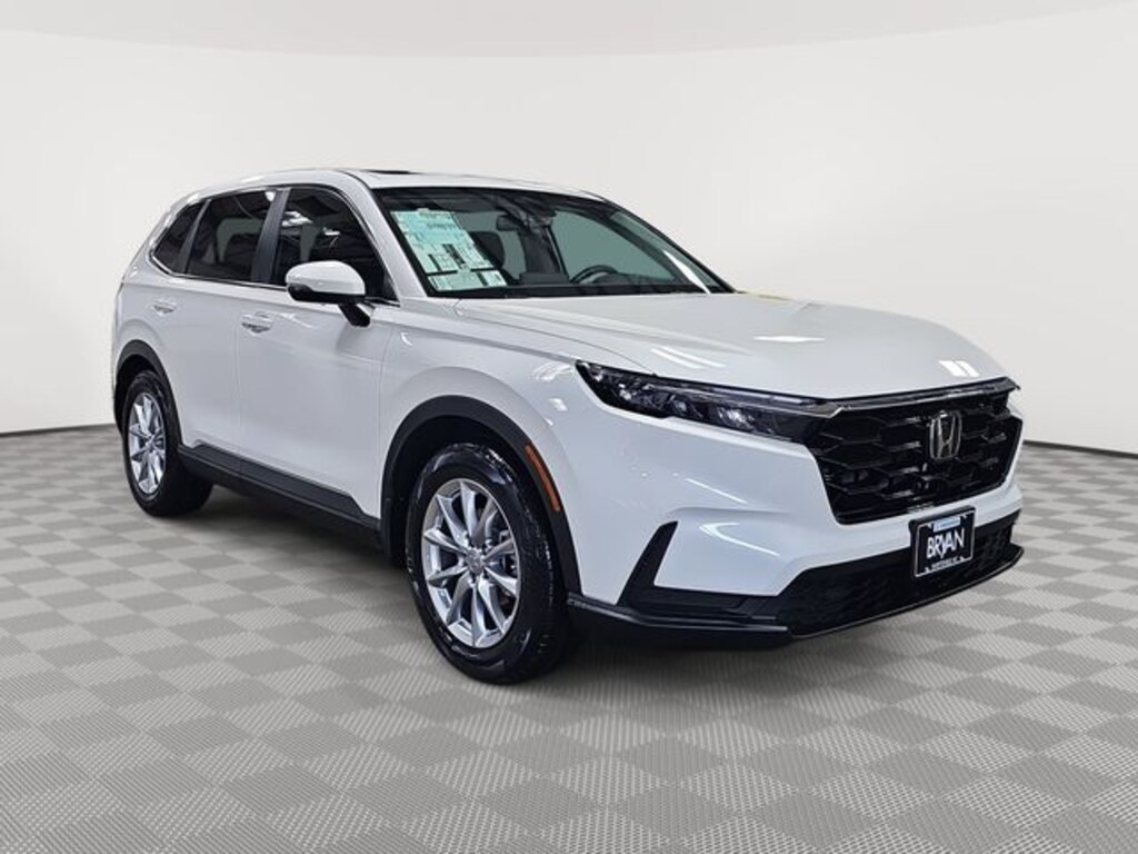 This 2026 Honda CR-V EX in Platinum White Pearl features: 4-Wheel Disc Brakes, 6 Speakers, ABS brakes, Adaptive Cruise Control: Adaptive Cruise Control (ACC) with Low-Speed Follow, Air Conditioning, Alloy wheels, AM/FM radio, Apple CarPlay/Android Auto, Auto High-beam Headlights, Automatic temperature control, Blind Spot Information (BSI) System warning, Brake assist, Bumpers: body-color, Cloth Seat Trim, Compass, Delay-off headlights, Driver door bin, Driver vanity mirror, Dual front impact airbags, Dual front side impact airbags, Electronic Stability Control, Exterior Parking Camera Rear, Four wheel independent suspension, Front anti-roll bar, Front Bucket Seats, Front Center Armrest, Front dual zone A/C, Front reading lights, Fully automatic headlights, Heated door mirrors, Heated Front Bucket Seats, Heated front seats, Illuminated entry, Knee airbag, Low tire pressure warning, Occupant sensing airbag, Outside temperature display, Overhead airbag, Overhead console, Panic alarm, Passenger door bin, Passenger vanity mirror, Power door mirrors, Power driver seat, Power moonroof, Power steering, Power windows, Radio data system, Radio: 240-Watt AM/FM Audio System, Rear anti-roll bar, Rear reading lights, Rear seat center armrest, Rear side impact airbag, Rear window defroster, Rear window wiper, Remote keyless entry, Security system, Speed control, Speed-sensing steering, Speed-Sensitive Wipers, Split folding rear seat, Spoiler, Steering wheel mounted audio controls, Tachometer, Telescoping steering wheel, Tilt steering wheel, Traction control, Trip computer, Turn signal indicator mirrors, Variably intermittent wipers, Wheels: 18" Sparkle Silver.