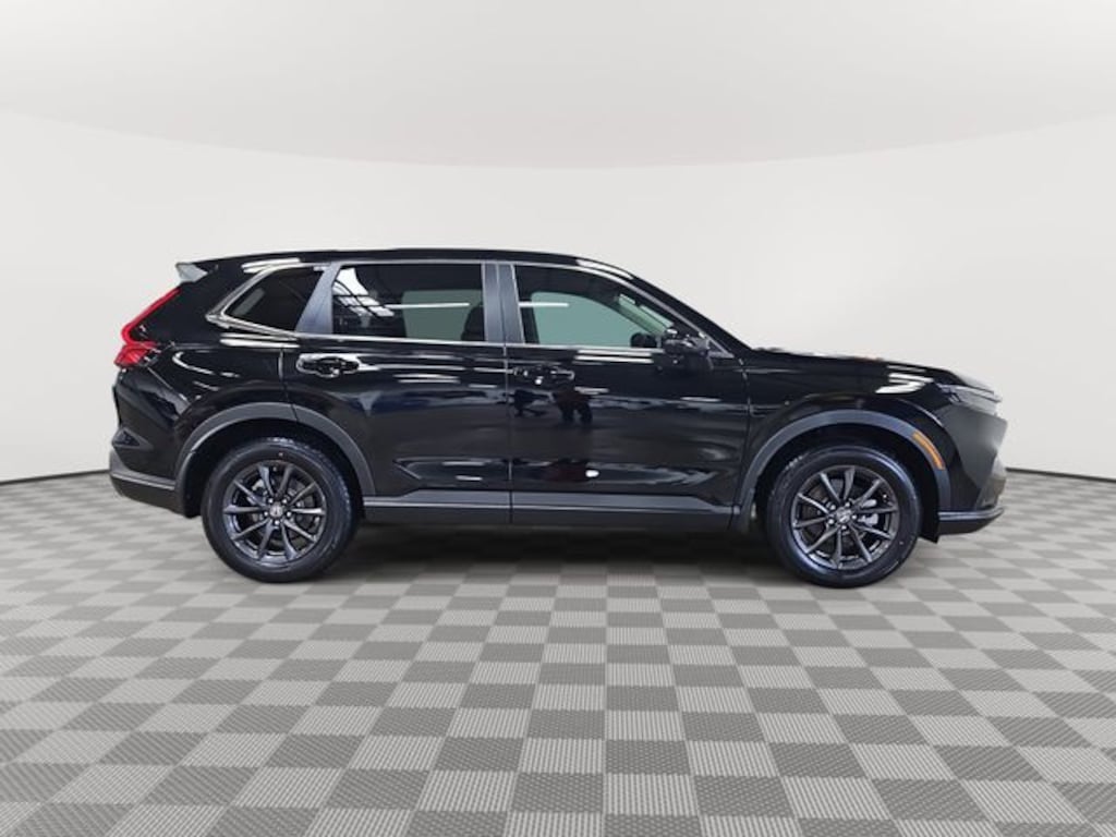 This 2026 Honda CR-V EX-L in Crystal Black Pearl features: AWD, AWD, 4-Wheel Disc Brakes, 8 Speakers, ABS brakes, Adaptive Cruise Control: Adaptive Cruise Control (ACC) with Low-Speed Follow, Air Conditioning, Alloy wheels, AM/FM radio, Apple CarPlay/Android Auto, Auto High-beam Headlights, Auto-dimming Rear-View mirror, Automatic temperature control, Blind Spot Information (BSI) System warning, Brake assist, Bumpers: body-color, Compass, Delay-off headlights, Driver door bin, Driver vanity mirror, Dual front impact airbags, Dual front side impact airbags, Electronic Stability Control, Exterior Parking Camera Rear, Four wheel independent suspension, Front anti-roll bar, Front Bucket Seats, Front Center Armrest, Front dual zone A/C, Front reading lights, Fully automatic headlights, Heated door mirrors, Heated Front Bucket Seats, Heated front seats, Illuminated entry, Knee airbag, Leather Seat Trim, Leather Shift Knob, Leather steering wheel, Low tire pressure warning, Memory seat, Occupant sensing airbag, Outside temperature display, Overhead airbag, Overhead console, Panic alarm, Passenger door bin, Passenger vanity mirror, Power door mirrors, Power driver seat, Power Liftgate, Power moonroof, Power passenger seat, Power steering, Power windows, Radio data system, Radio: 320-Watt AM/FM Audio System, Rear anti-roll bar, Rear reading lights, Rear seat center armrest, Rear side impact airbag, Rear window defroster, Rear window wiper, Remote keyless entry, Security system, Speed control, Speed-sensing steering, Speed-Sensitive Wipers, Split folding rear seat, Spoiler, Steering wheel mounted audio controls, Tachometer, Telescoping steering wheel, Tilt steering wheel, Traction control, Trip computer, Turn signal indicator mirrors, Variably intermittent wipers, Wheels: 18" Shark Grey.