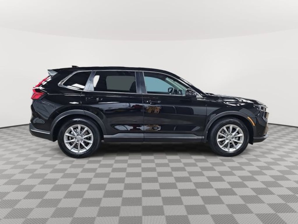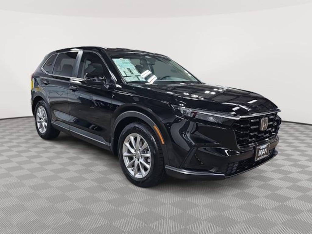 This 2026 Honda CR-V EX in Crystal Black Pearl features: 4-Wheel Disc Brakes, 6 Speakers, ABS brakes, Adaptive Cruise Control: Adaptive Cruise Control (ACC) with Low-Speed Follow, Air Conditioning, Alloy wheels, AM/FM radio, Apple CarPlay/Android Auto, Auto High-beam Headlights, Automatic temperature control, Blind Spot Information (BSI) System warning, Brake assist, Bumpers: body-color, Cloth Seat Trim, Compass, Delay-off headlights, Driver door bin, Driver vanity mirror, Dual front impact airbags, Dual front side impact airbags, Electronic Stability Control, Exterior Parking Camera Rear, Four wheel independent suspension, Front anti-roll bar, Front Bucket Seats, Front Center Armrest, Front dual zone A/C, Front reading lights, Fully automatic headlights, Heated door mirrors, Heated Front Bucket Seats, Heated front seats, Illuminated entry, Knee airbag, Low tire pressure warning, Occupant sensing airbag, Outside temperature display, Overhead airbag, Overhead console, Panic alarm, Passenger door bin, Passenger vanity mirror, Power door mirrors, Power driver seat, Power moonroof, Power steering, Power windows, Radio data system, Radio: 240-Watt AM/FM Audio System, Rear anti-roll bar, Rear reading lights, Rear seat center armrest, Rear side impact airbag, Rear window defroster, Rear window wiper, Remote keyless entry, Security system, Speed control, Speed-sensing steering, Speed-Sensitive Wipers, Split folding rear seat, Spoiler, Steering wheel mounted audio controls, Tachometer, Telescoping steering wheel, Tilt steering wheel, Traction control, Trip computer, Turn signal indicator mirrors, Variably intermittent wipers, Wheels: 18" Sparkle Silver.