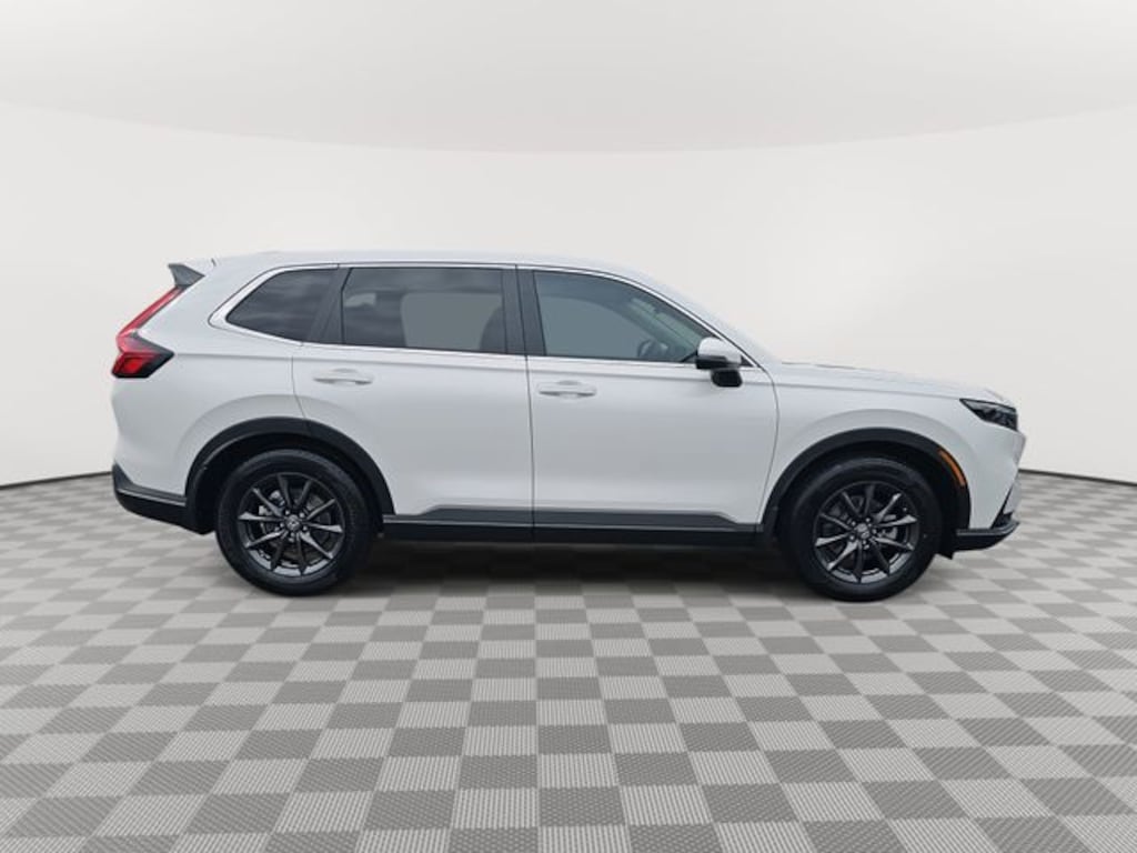 This 2026 Honda CR-V EX-L in Platinum White Pearl features: 4-Wheel Disc Brakes, 8 Speakers, ABS brakes, Adaptive Cruise Control: Adaptive Cruise Control (ACC) with Low-Speed Follow, Air Conditioning, Alloy wheels, AM/FM radio, Apple CarPlay/Android Auto, Auto High-beam Headlights, Auto-dimming Rear-View mirror, Automatic temperature control, Blind Spot Information (BSI) System warning, Brake assist, Bumpers: body-color, Compass, Delay-off headlights, Driver door bin, Driver vanity mirror, Dual front impact airbags, Dual front side impact airbags, Electronic Stability Control, Exterior Parking Camera Rear, Four wheel independent suspension, Front anti-roll bar, Front Bucket Seats, Front Center Armrest, Front dual zone A/C, Front reading lights, Fully automatic headlights, Heated door mirrors, Heated Front Bucket Seats, Heated front seats, Illuminated entry, Knee airbag, Leather Seat Trim, Leather Shift Knob, Leather steering wheel, Low tire pressure warning, Memory seat, Occupant sensing airbag, Outside temperature display, Overhead airbag, Overhead console, Panic alarm, Passenger door bin, Passenger vanity mirror, Power door mirrors, Power driver seat, Power Liftgate, Power moonroof, Power passenger seat, Power steering, Power windows, Radio data system, Radio: 320-Watt AM/FM Audio System, Rear anti-roll bar, Rear reading lights, Rear seat center armrest, Rear side impact airbag, Rear window defroster, Rear window wiper, Remote keyless entry, Security system, Speed control, Speed-sensing steering, Speed-Sensitive Wipers, Split folding rear seat, Spoiler, Steering wheel mounted audio controls, Tachometer, Telescoping steering wheel, Tilt steering wheel, Traction control, Trip computer, Turn signal indicator mirrors, Variably intermittent wipers, Wheels: 18" Shark Grey.