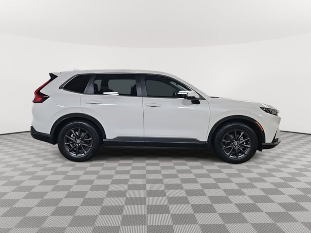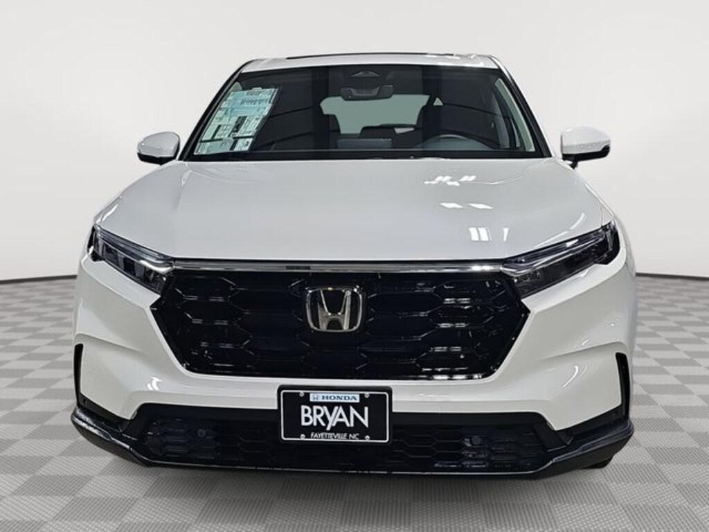 This 2026 Honda CR-V EX-L in Platinum White Pearl features: 4-Wheel Disc Brakes, 8 Speakers, ABS brakes, Adaptive Cruise Control: Adaptive Cruise Control (ACC) with Low-Speed Follow, Air Conditioning, Alloy wheels, AM/FM radio, Apple CarPlay/Android Auto, Auto High-beam Headlights, Auto-dimming Rear-View mirror, Automatic temperature control, Blind Spot Information (BSI) System warning, Brake assist, Bumpers: body-color, Compass, Delay-off headlights, Driver door bin, Driver vanity mirror, Dual front impact airbags, Dual front side impact airbags, Electronic Stability Control, Exterior Parking Camera Rear, Four wheel independent suspension, Front anti-roll bar, Front Bucket Seats, Front Center Armrest, Front dual zone A/C, Front reading lights, Fully automatic headlights, Heated door mirrors, Heated Front Bucket Seats, Heated front seats, Illuminated entry, Knee airbag, Leather Seat Trim, Leather Shift Knob, Leather steering wheel, Low tire pressure warning, Memory seat, Occupant sensing airbag, Outside temperature display, Overhead airbag, Overhead console, Panic alarm, Passenger door bin, Passenger vanity mirror, Power door mirrors, Power driver seat, Power Liftgate, Power moonroof, Power passenger seat, Power steering, Power windows, Radio data system, Radio: 320-Watt AM/FM Audio System, Rear anti-roll bar, Rear reading lights, Rear seat center armrest, Rear side impact airbag, Rear window defroster, Rear window wiper, Remote keyless entry, Security system, Speed control, Speed-sensing steering, Speed-Sensitive Wipers, Split folding rear seat, Spoiler, Steering wheel mounted audio controls, Tachometer, Telescoping steering wheel, Tilt steering wheel, Traction control, Trip computer, Turn signal indicator mirrors, Variably intermittent wipers, Wheels: 18" Shark Grey.