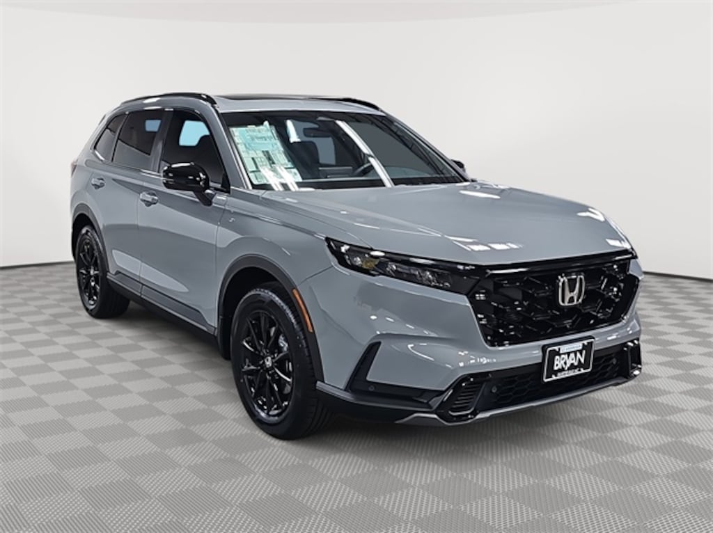 This 2026 Honda CR-V Hybrid Sport-L in Urban Gray Pearl features: 2.0L I4 DOHC 16V, 2.0L I4 DOHC 16V, 4-Wheel Disc Brakes, 8 Speakers, ABS brakes, Adaptive Cruise Control: Adaptive Cruise Control (ACC) with Low-Speed Follow, Air Conditioning, Alloy wheels, Apple CarPlay/Android Auto, Auto High-beam Headlights, Auto-dimming Rear-View mirror, Automatic temperature control, Blind Spot Information (BSI) System warning, Brake assist, Bumpers: body-color, Compass, Delay-off headlights, Driver door bin, Driver vanity mirror, Dual front impact airbags, Dual front side impact airbags, Electronic Stability Control, Exterior Parking Camera Rear, Four wheel independent suspension, Front anti-roll bar, Front Bucket Seats, Front Center Armrest, Front dual zone A/C, Front reading lights, Fully automatic headlights, Heated door mirrors, Heated Front Bucket Seats, Heated front seats, Illuminated entry, Knee airbag, Leather Seat Trim, Leather Shift Knob, Leather steering wheel, Low tire pressure warning, Memory seat, Occupant sensing airbag, Outside temperature display, Overhead airbag, Overhead console, Panic alarm, Passenger door bin, Passenger vanity mirror, Power door mirrors, Power driver seat, Power Liftgate, Power moonroof, Power passenger seat, Power steering, Power windows, Radio data system, Radio: 320-Watt AM/FM Audio System, Rear anti-roll bar, Rear reading lights, Rear seat center armrest, Rear side impact airbag, Rear window defroster, Rear window wiper, Remote keyless entry, Security system, Speed control, Speed-sensing steering, Speed-Sensitive Wipers, Split folding rear seat, Spoiler, Steering wheel mounted audio controls, Telescoping steering wheel, Tilt steering wheel, Traction control, Trip computer, Turn signal indicator mirrors, Variably intermittent wipers, Wheels: 18" Berlina Black.