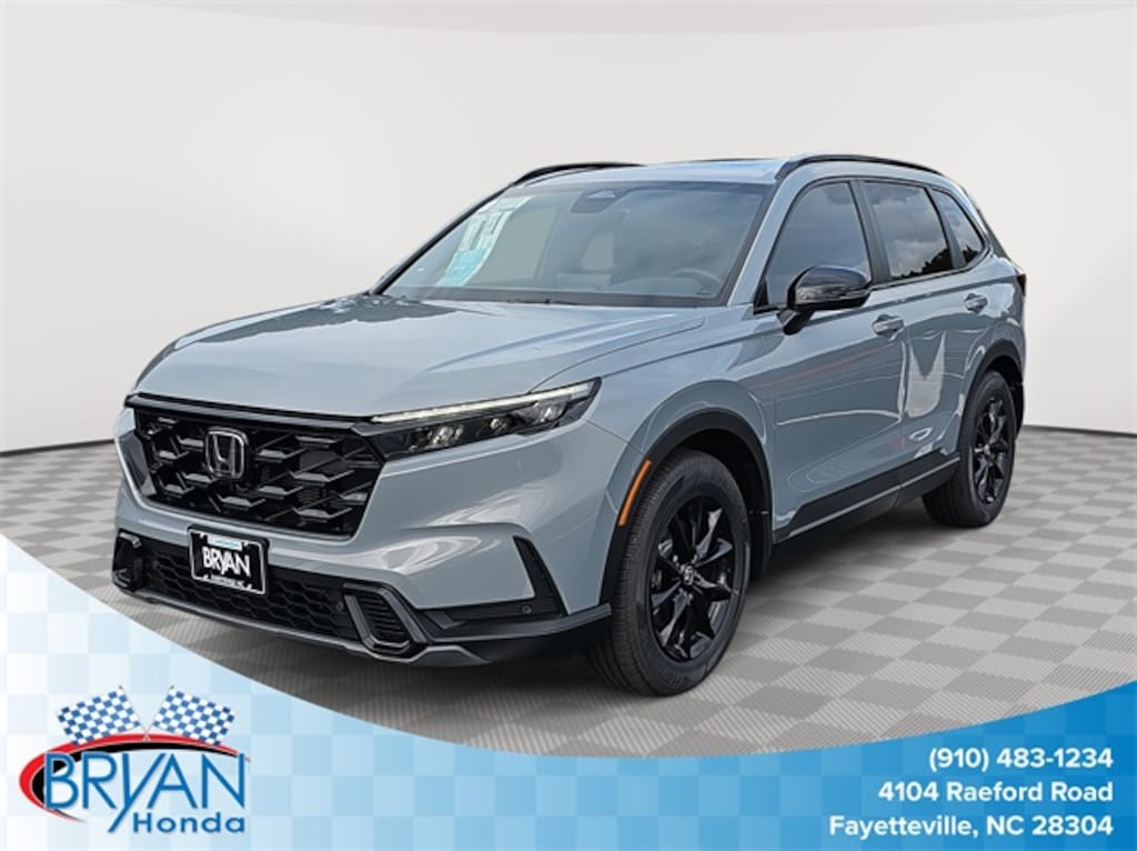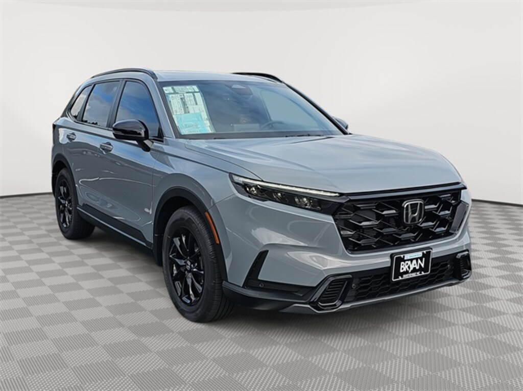 This 2026 Honda CR-V Hybrid Sport-L in Urban Gray Pearl features: 2.0L I4 DOHC 16V, 2.0L I4 DOHC 16V, 4-Wheel Disc Brakes, 8 Speakers, ABS brakes, Adaptive Cruise Control: Adaptive Cruise Control (ACC) with Low-Speed Follow, Air Conditioning, Alloy wheels, Apple CarPlay/Android Auto, Auto High-beam Headlights, Auto-dimming Rear-View mirror, Automatic temperature control, Blind Spot Information (BSI) System warning, Brake assist, Bumpers: body-color, Compass, Delay-off headlights, Driver door bin, Driver vanity mirror, Dual front impact airbags, Dual front side impact airbags, Electronic Stability Control, Exterior Parking Camera Rear, Four wheel independent suspension, Front anti-roll bar, Front Bucket Seats, Front Center Armrest, Front dual zone A/C, Front reading lights, Fully automatic headlights, Heated door mirrors, Heated Front Bucket Seats, Heated front seats, Illuminated entry, Knee airbag, Leather Seat Trim, Leather Shift Knob, Leather steering wheel, Low tire pressure warning, Memory seat, Occupant sensing airbag, Outside temperature display, Overhead airbag, Overhead console, Panic alarm, Passenger door bin, Passenger vanity mirror, Power door mirrors, Power driver seat, Power Liftgate, Power moonroof, Power passenger seat, Power steering, Power windows, Radio data system, Radio: 320-Watt AM/FM Audio System, Rear anti-roll bar, Rear reading lights, Rear seat center armrest, Rear side impact airbag, Rear window defroster, Rear window wiper, Remote keyless entry, Security system, Speed control, Speed-sensing steering, Speed-Sensitive Wipers, Split folding rear seat, Spoiler, Steering wheel mounted audio controls, Telescoping steering wheel, Tilt steering wheel, Traction control, Trip computer, Turn signal indicator mirrors, Variably intermittent wipers, Wheels: 18" Berlina Black.