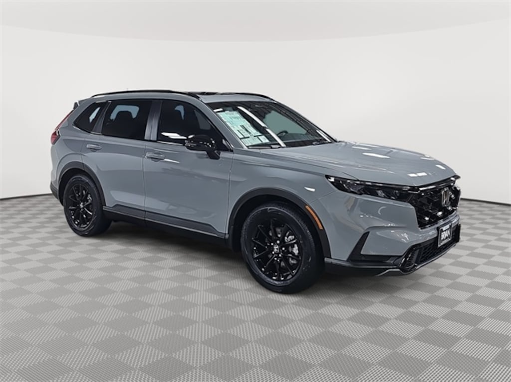 This 2026 Honda CR-V Hybrid Sport-L in Urban Gray Pearl features: 2.0L I4 DOHC 16V, 2.0L I4 DOHC 16V, 4-Wheel Disc Brakes, 8 Speakers, ABS brakes, Adaptive Cruise Control: Adaptive Cruise Control (ACC) with Low-Speed Follow, Air Conditioning, Alloy wheels, Apple CarPlay/Android Auto, Auto High-beam Headlights, Auto-dimming Rear-View mirror, Automatic temperature control, Blind Spot Information (BSI) System warning, Brake assist, Bumpers: body-color, Compass, Delay-off headlights, Driver door bin, Driver vanity mirror, Dual front impact airbags, Dual front side impact airbags, Electronic Stability Control, Exterior Parking Camera Rear, Four wheel independent suspension, Front anti-roll bar, Front Bucket Seats, Front Center Armrest, Front dual zone A/C, Front reading lights, Fully automatic headlights, Heated door mirrors, Heated Front Bucket Seats, Heated front seats, Illuminated entry, Knee airbag, Leather Seat Trim, Leather Shift Knob, Leather steering wheel, Low tire pressure warning, Memory seat, Occupant sensing airbag, Outside temperature display, Overhead airbag, Overhead console, Panic alarm, Passenger door bin, Passenger vanity mirror, Power door mirrors, Power driver seat, Power Liftgate, Power moonroof, Power passenger seat, Power steering, Power windows, Radio data system, Radio: 320-Watt AM/FM Audio System, Rear anti-roll bar, Rear reading lights, Rear seat center armrest, Rear side impact airbag, Rear window defroster, Rear window wiper, Remote keyless entry, Security system, Speed control, Speed-sensing steering, Speed-Sensitive Wipers, Split folding rear seat, Spoiler, Steering wheel mounted audio controls, Telescoping steering wheel, Tilt steering wheel, Traction control, Trip computer, Turn signal indicator mirrors, Variably intermittent wipers, Wheels: 18" Berlina Black.