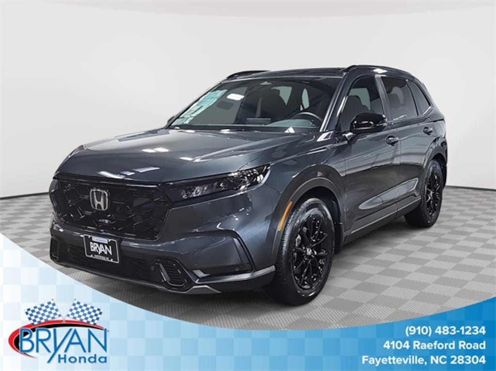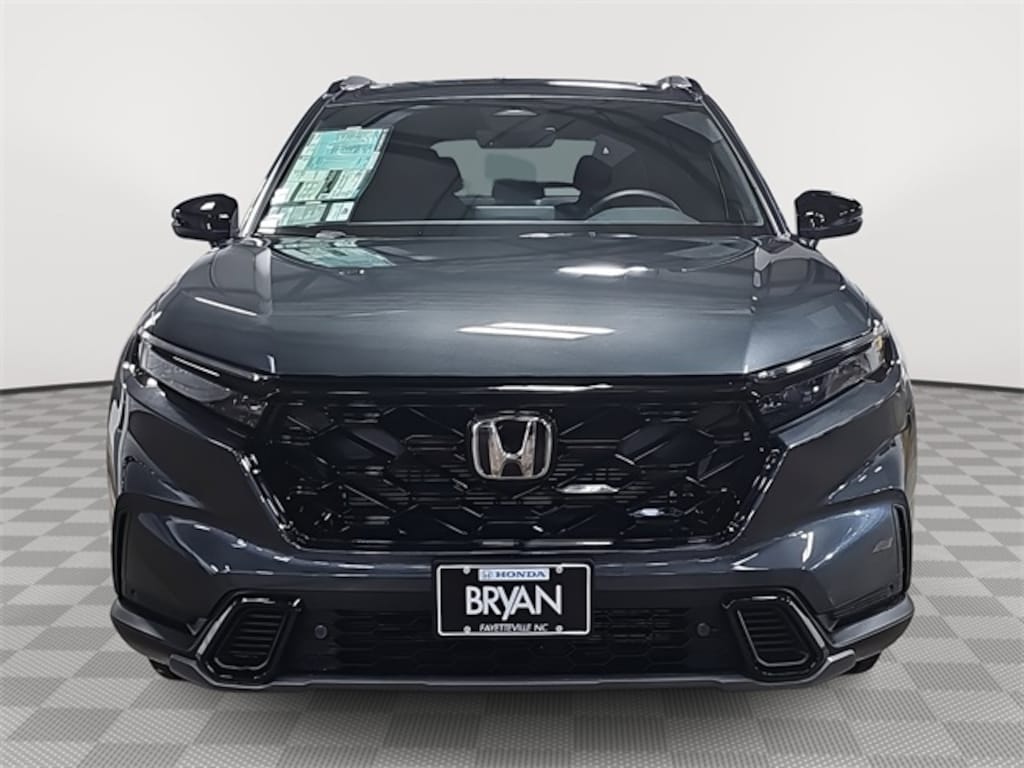 This 2026 Honda CR-V Hybrid Sport-L in Meteorite Gray Metallic features: 2.0L I4 DOHC 16V, 2.0L I4 DOHC 16V, 4-Wheel Disc Brakes, 8 Speakers, ABS brakes, Adaptive Cruise Control: Adaptive Cruise Control (ACC) with Low-Speed Follow, Air Conditioning, Alloy wheels, Apple CarPlay/Android Auto, Auto High-beam Headlights, Auto-dimming Rear-View mirror, Automatic temperature control, Blind Spot Information (BSI) System warning, Brake assist, Bumpers: body-color, Compass, Delay-off headlights, Driver door bin, Driver vanity mirror, Dual front impact airbags, Dual front side impact airbags, Electronic Stability Control, Exterior Parking Camera Rear, Four wheel independent suspension, Front anti-roll bar, Front Bucket Seats, Front Center Armrest, Front dual zone A/C, Front reading lights, Fully automatic headlights, Heated door mirrors, Heated Front Bucket Seats, Heated front seats, Illuminated entry, Knee airbag, Leather Seat Trim, Leather Shift Knob, Leather steering wheel, Low tire pressure warning, Memory seat, Occupant sensing airbag, Outside temperature display, Overhead airbag, Overhead console, Panic alarm, Passenger door bin, Passenger vanity mirror, Power door mirrors, Power driver seat, Power Liftgate, Power moonroof, Power passenger seat, Power steering, Power windows, Radio data system, Radio: 320-Watt AM/FM Audio System, Rear anti-roll bar, Rear reading lights, Rear seat center armrest, Rear side impact airbag, Rear window defroster, Rear window wiper, Remote keyless entry, Security system, Speed control, Speed-sensing steering, Speed-Sensitive Wipers, Split folding rear seat, Spoiler, Steering wheel mounted audio controls, Telescoping steering wheel, Tilt steering wheel, Traction control, Trip computer, Turn signal indicator mirrors, Variably intermittent wipers, Wheels: 18" Berlina Black.
