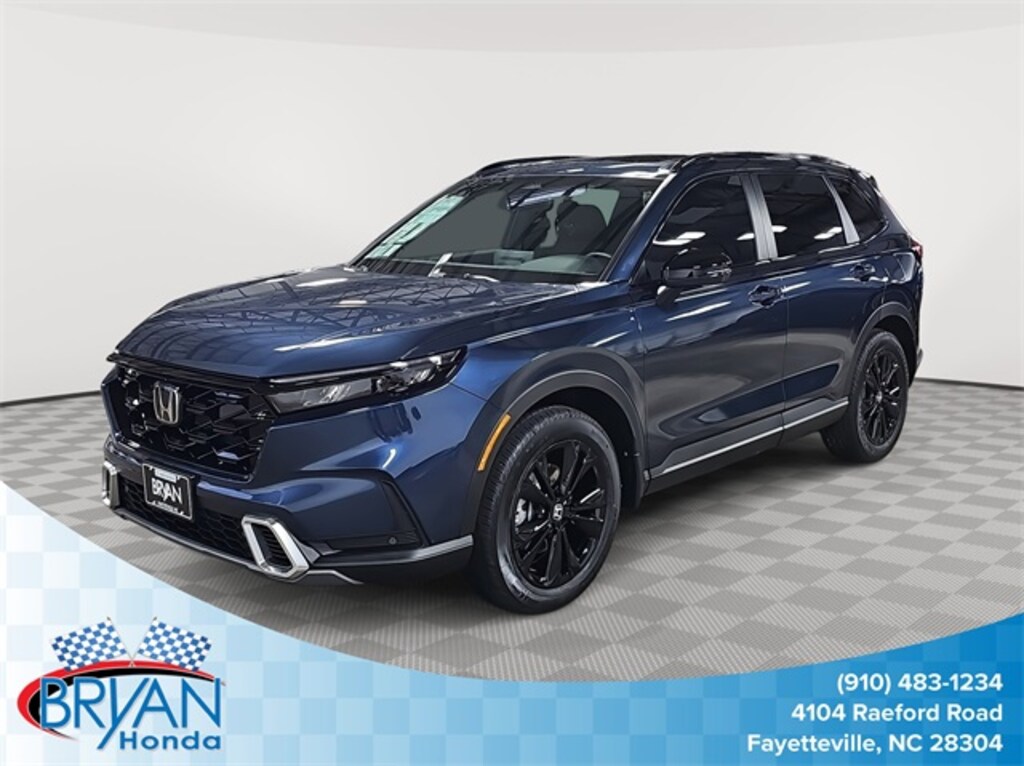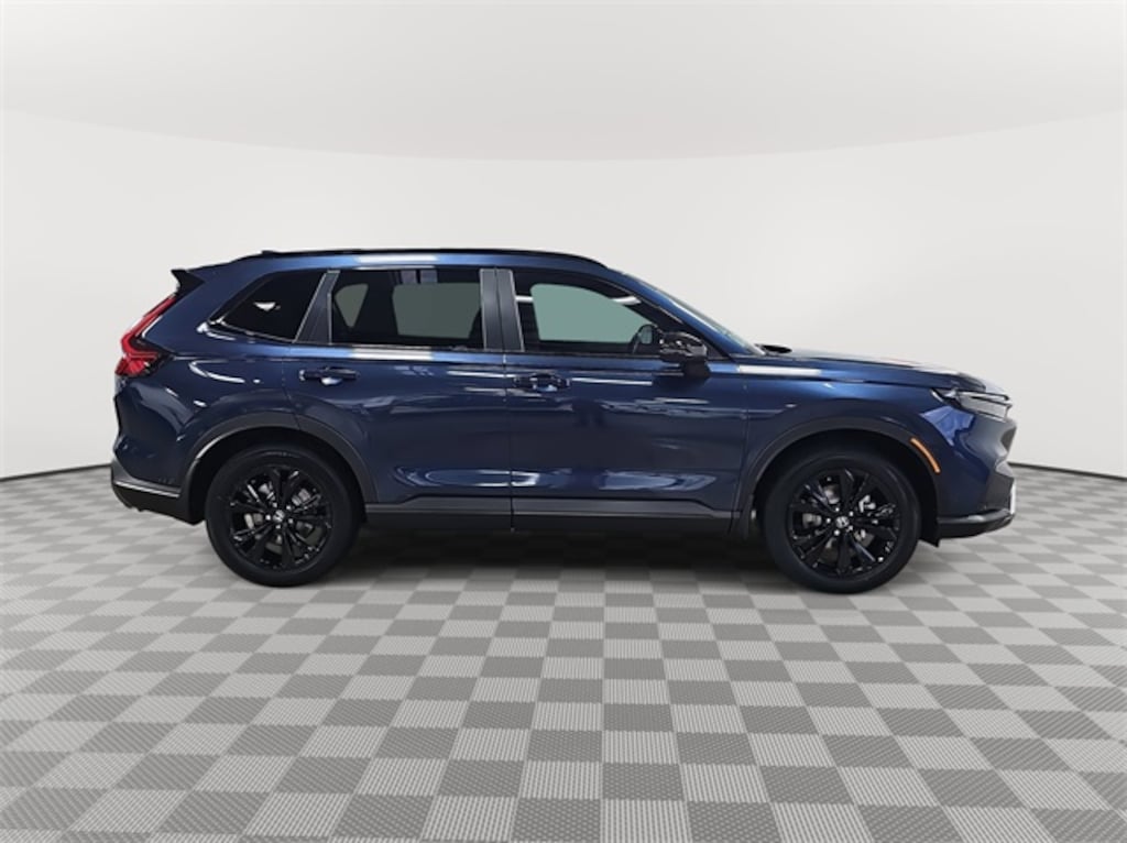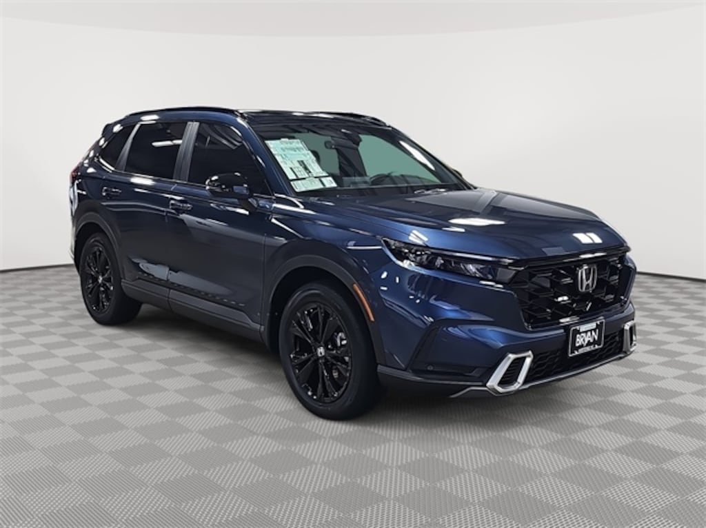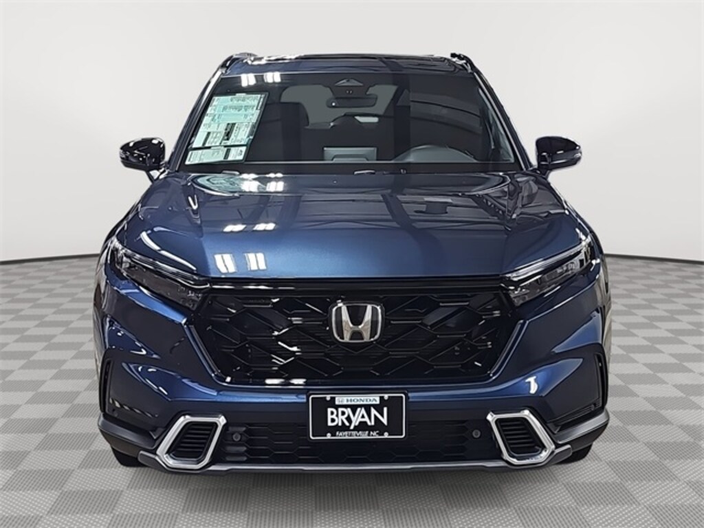 This 2026 Honda CR-V Hybrid Sport Touring in Canyon River Blue Metallic features: 2.0L I4 DOHC 16V, 2.0L I4 DOHC 16V, 12 Speakers, 4-Wheel Disc Brakes, ABS brakes, Adaptive Cruise Control: Adaptive Cruise Control (ACC) with Low-Speed Follow, Air Conditioning, Alloy wheels, Apple CarPlay/Android Auto, Auto High-beam Headlights, Auto-dimming Rear-View mirror, Automatic temperature control, Blind Spot Information (BSI) System warning, Bose Premium Sound System, Brake assist, Bumpers: body-color, Compass, Delay-off headlights, Driver door bin, Driver vanity mirror, Dual front impact airbags, Dual front side impact airbags, Electronic Stability Control, Exterior Parking Camera Rear, Four wheel independent suspension, Front anti-roll bar, Front Bucket Seats, Front Center Armrest, Front dual zone A/C, Front reading lights, Fully automatic headlights, Heated door mirrors, Heated Front Bucket Seats, Heated front seats, Heated steering wheel, Illuminated entry, Knee airbag, Leather Seat Trim, Leather Shift Knob, Leather steering wheel, Low tire pressure warning, Memory seat, Navigation system: Google Maps, Occupant sensing airbag, Outside temperature display, Overhead airbag, Overhead console, Panic alarm, Passenger door bin, Passenger vanity mirror, Power door mirrors, Power driver seat, Power Liftgate, Power moonroof, Power passenger seat, Power steering, Power windows, Radio data system, Rain sensing wipers, Rear anti-roll bar, Rear reading lights, Rear seat center armrest, Rear side impact airbag, Rear window defroster, Rear window wiper, Remote keyless entry, Security system, Speed control, Speed-sensing steering, Speed-Sensitive Wipers, Split folding rear seat, Spoiler, Steering wheel mounted audio controls, Telescoping steering wheel, Tilt steering wheel, Traction control, Trip computer, Turn signal indicator mirrors, Variably intermittent wipers, Wheels: 19" Berlina Black.
